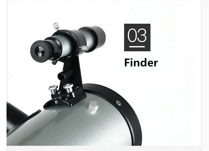 Особенности:1. Уметь фокусировать больше света для исследования далекой Галактики, туманности и звездных скоплений2. Уметь захватывать отличные достопримечательности таких планет, как луна, Юпитер и т. д. (это требует некоторых основных астрономических знаний пользователей наблюдения)3. Основной вид отражателя, отсутствие хроматической аберрации.Внимание!: Никогда не пытайтесь наблюдать за солнцем и луной прямо через телескоп, это повредит ваши глаза сильно! Пожалуйста, используйте его соответствующие солнцезащитные фильтры и лунные фильтры