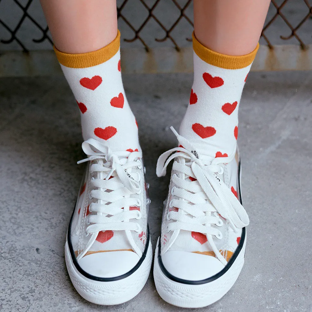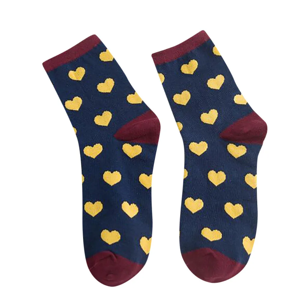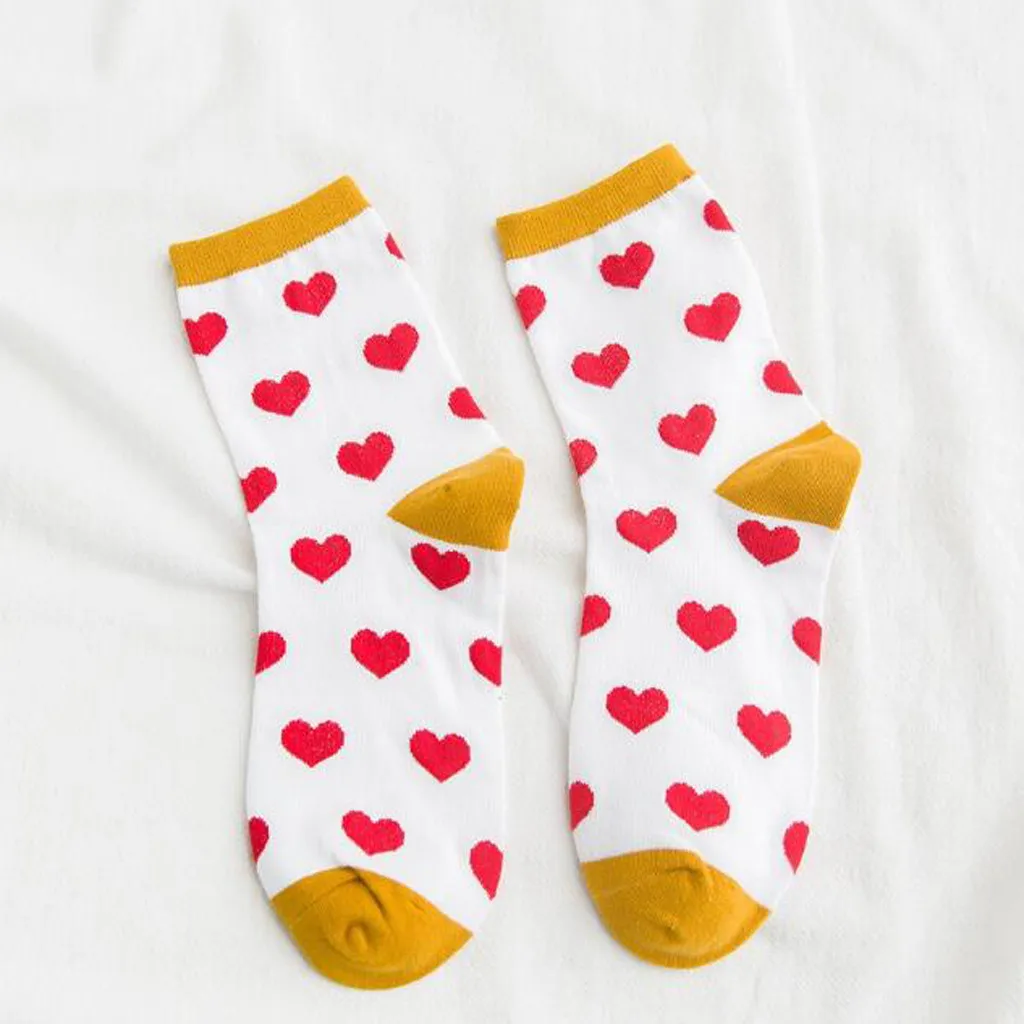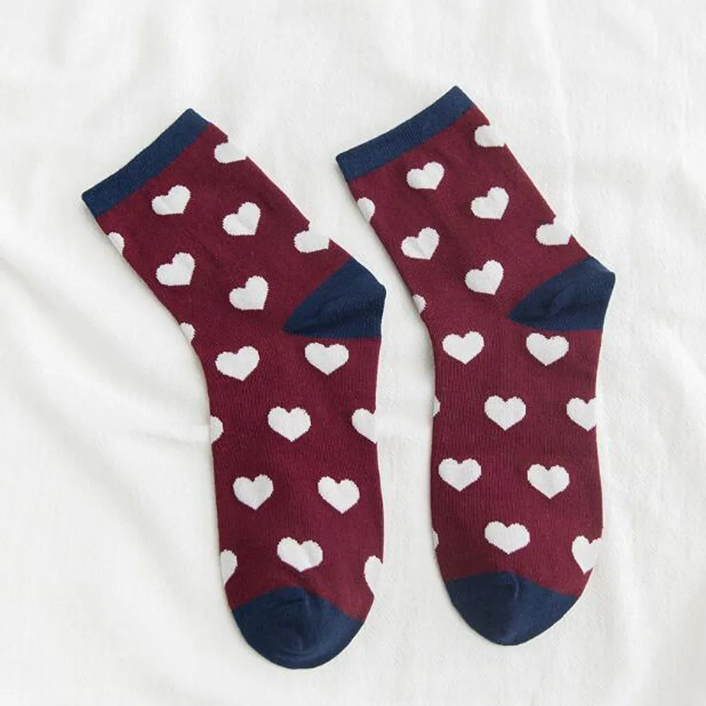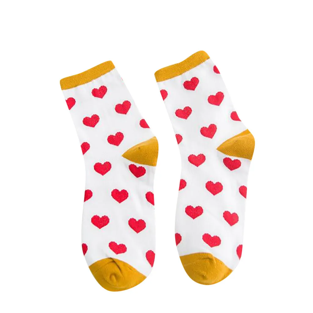 Women Girls Fashion Heart Print Cotton Middle Tube Socks Stockings