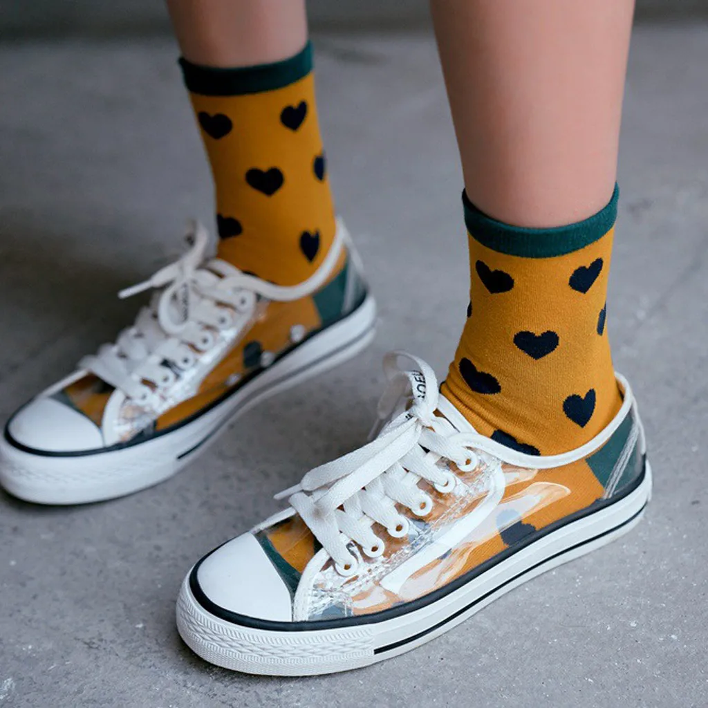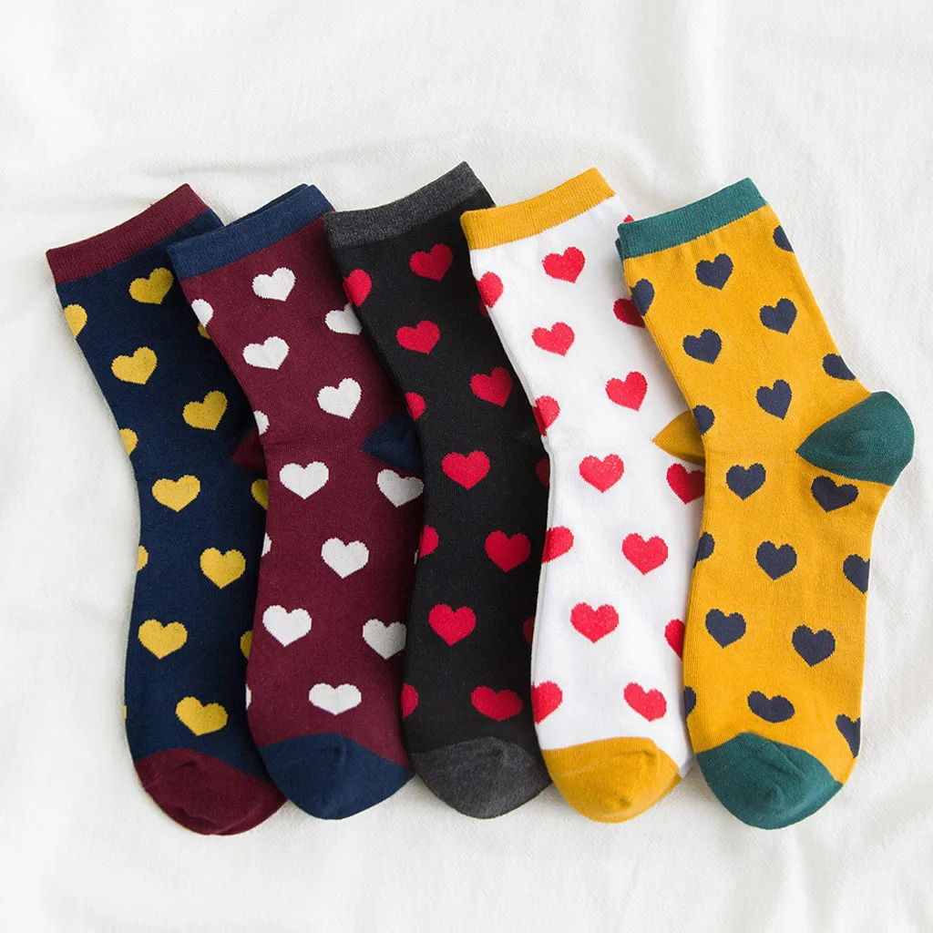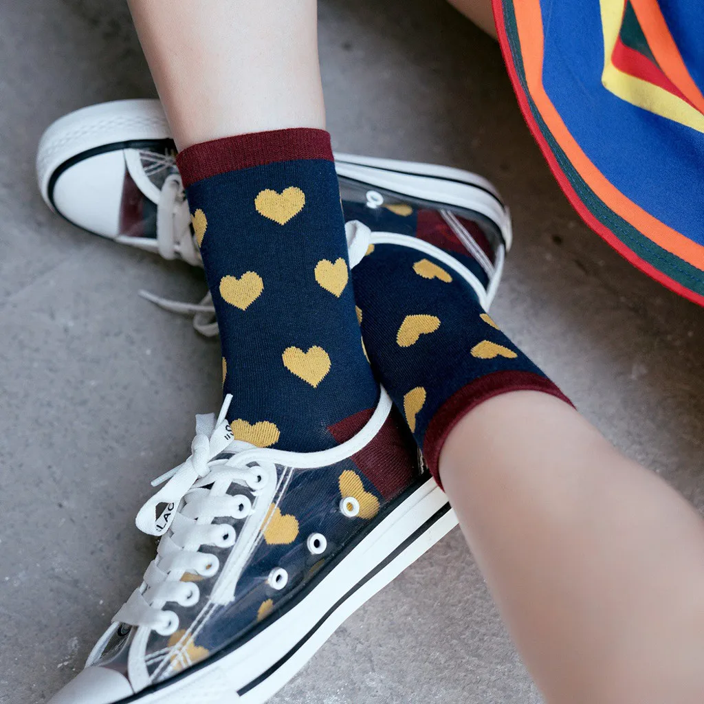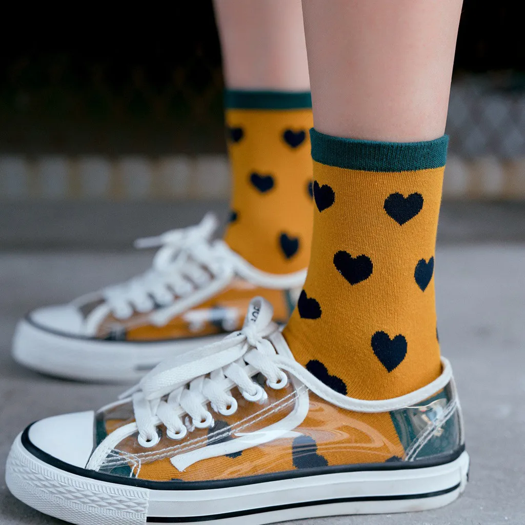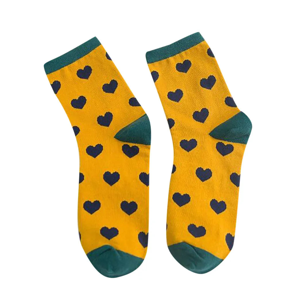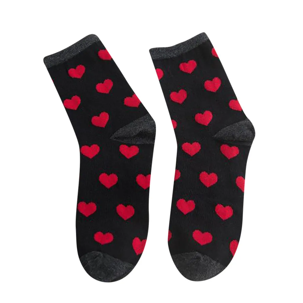 Women Girls Fashion Heart Print Cotton Middle Tube Socks Stockings