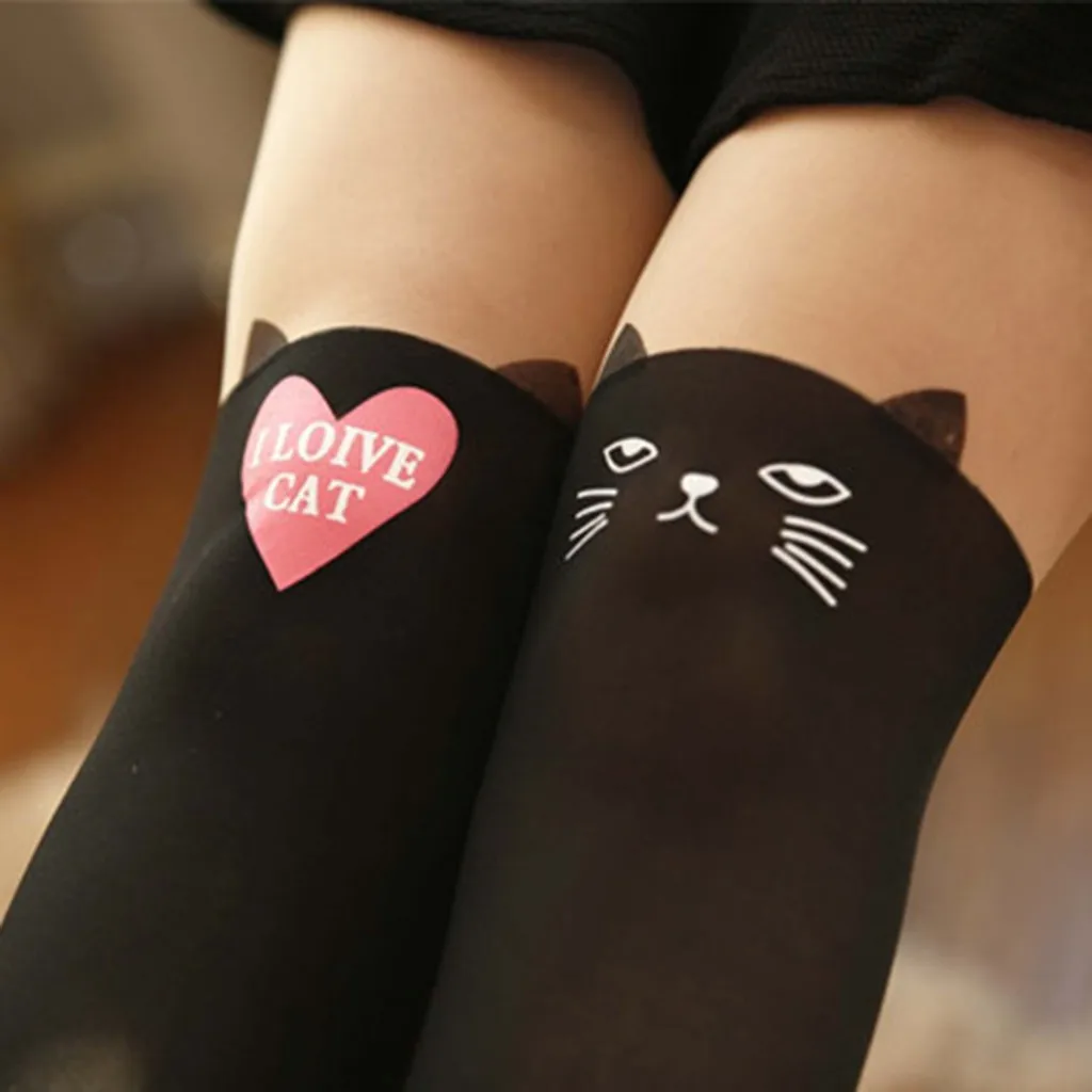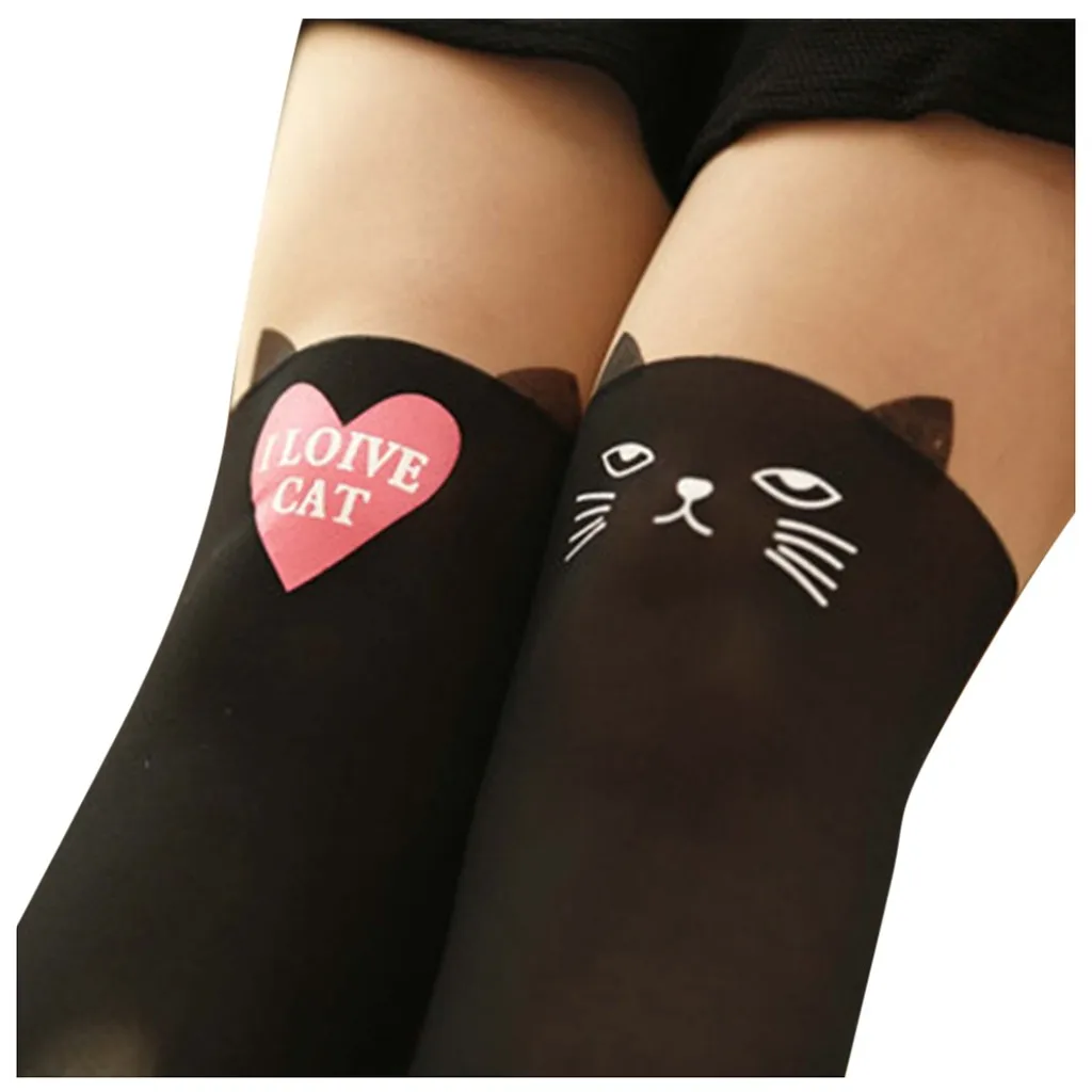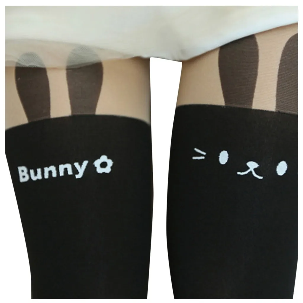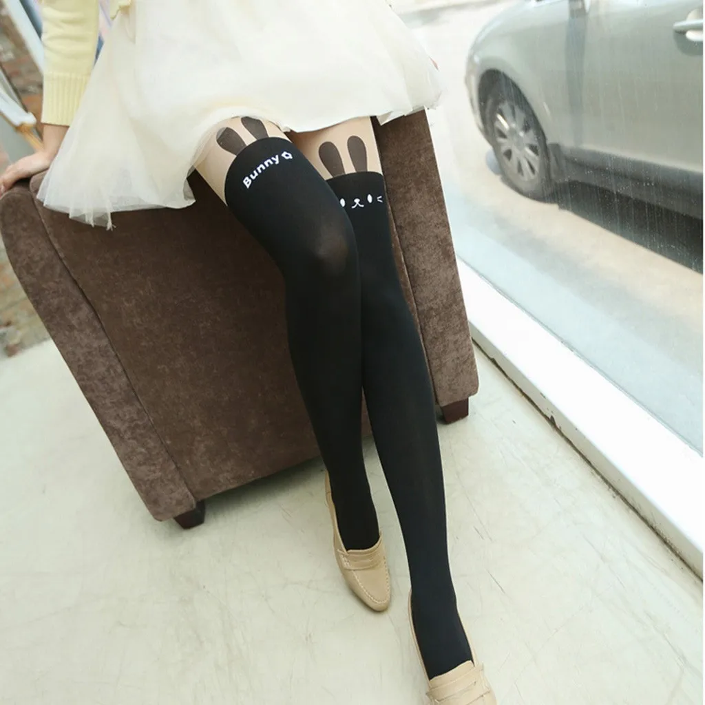 Women Winter Cat Bear Cartoon Knitted False Over Knee Warm Bottoming Socks