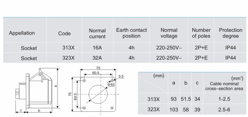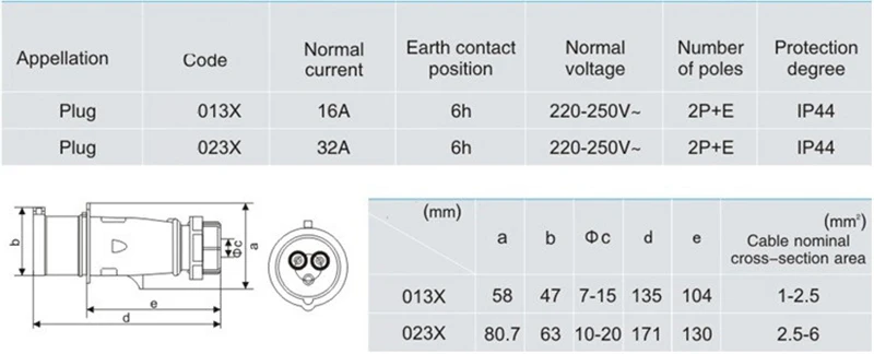 32A 3 Pin 220V-250V IP44 2P + E Электрический Водонепроницаемый промышленный мужской/женский разъем питания Промышленный разъем и розетка Модель: 023X/123X/223X/323X Название: промышленная розетка/вилка Ток: 32A Напряжение: 220-250 В Полюс: 3 Контактное положение земли: 6h Степень защиты: IP44 Материал: PA66,H62 латунь Сертификация: CE