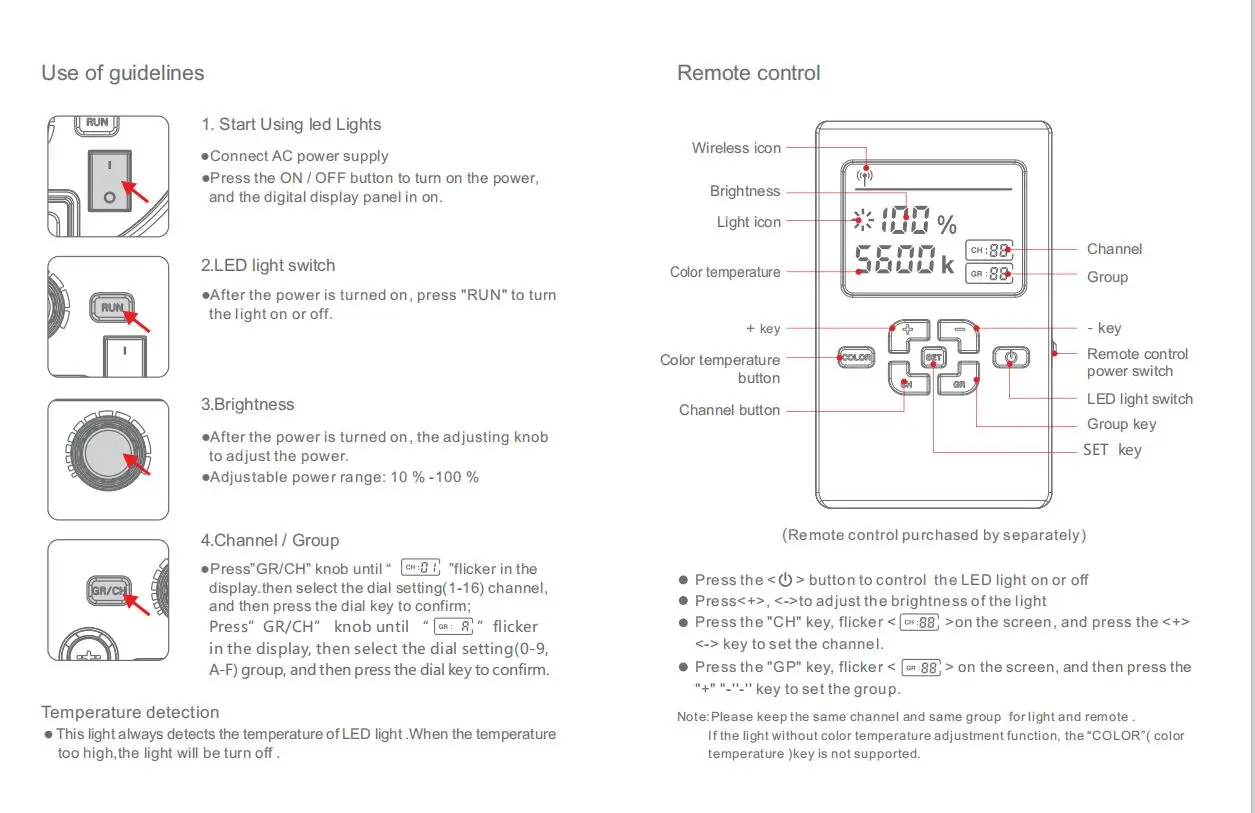 The guider no higher than 95 , which truly reduces the color of the object. Optional remote control, 2.4 GHz wireless grouping control with 16 groups