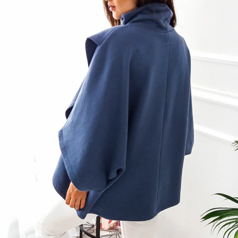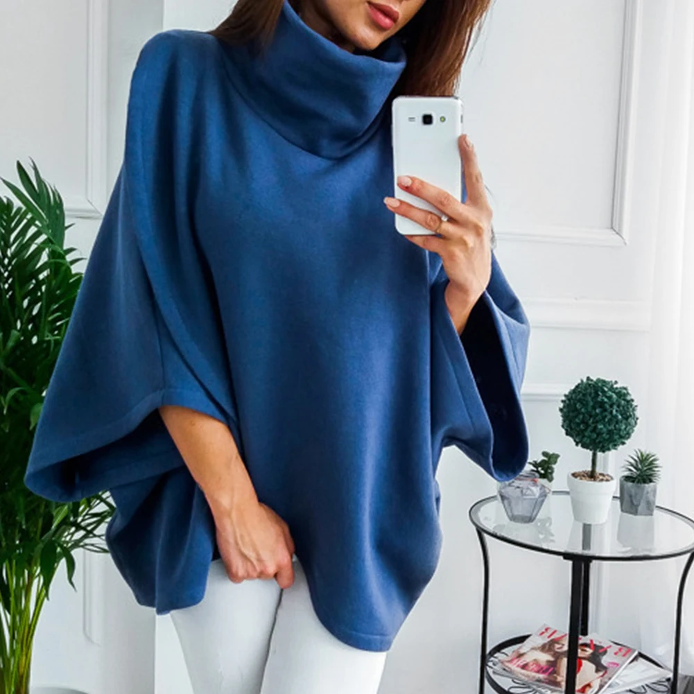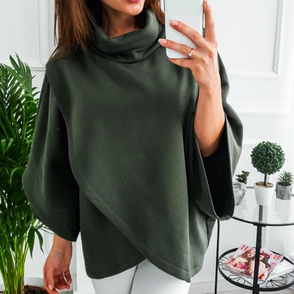 Женский Хлопковый вязаный пуловер с длинными рукавами «летучая мышь», теплая зимняя накидка-накидка с высоким воротником