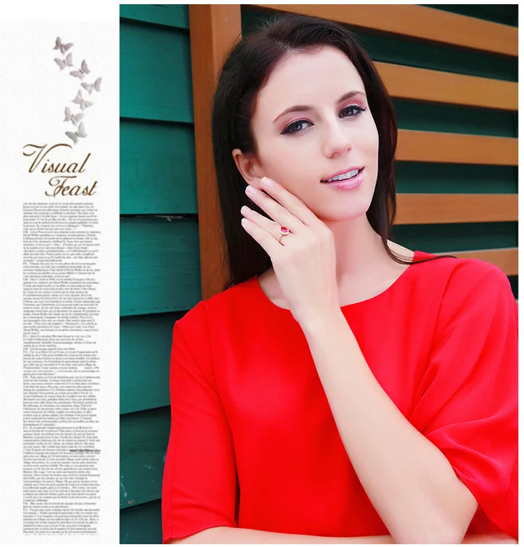 WEGERSTI горячее розовое золото цветок изменяемый 925 серебряные ювелирные изделия Красный камень циркон обручальное кольцо женский подарок хорошее ювелирное изделие