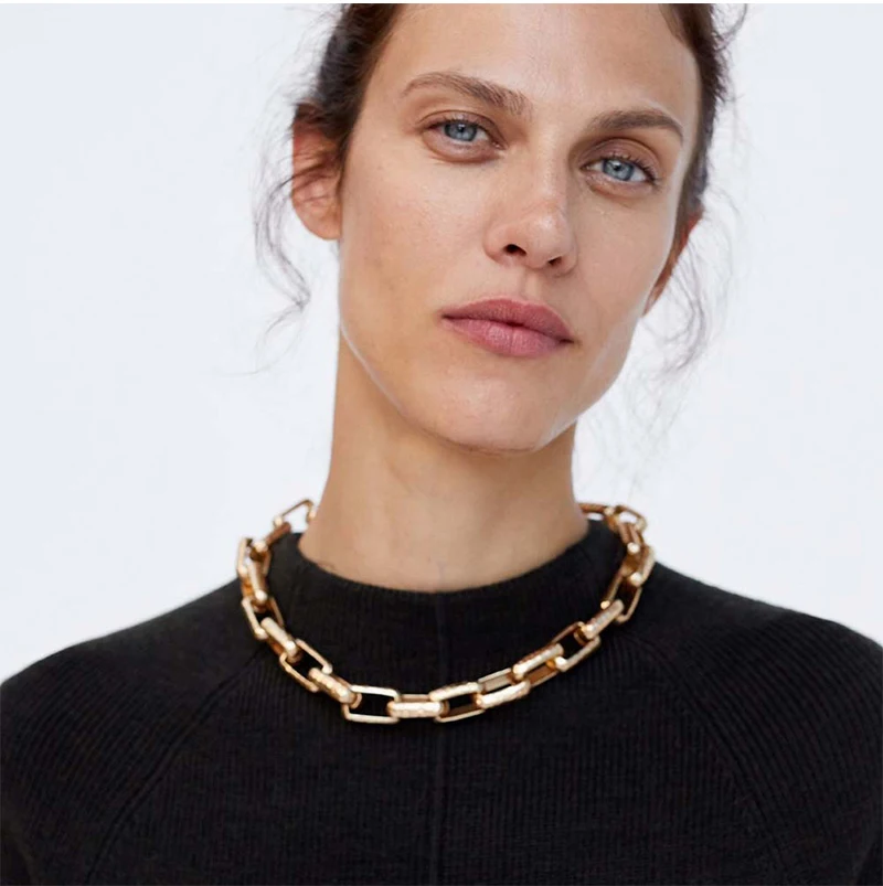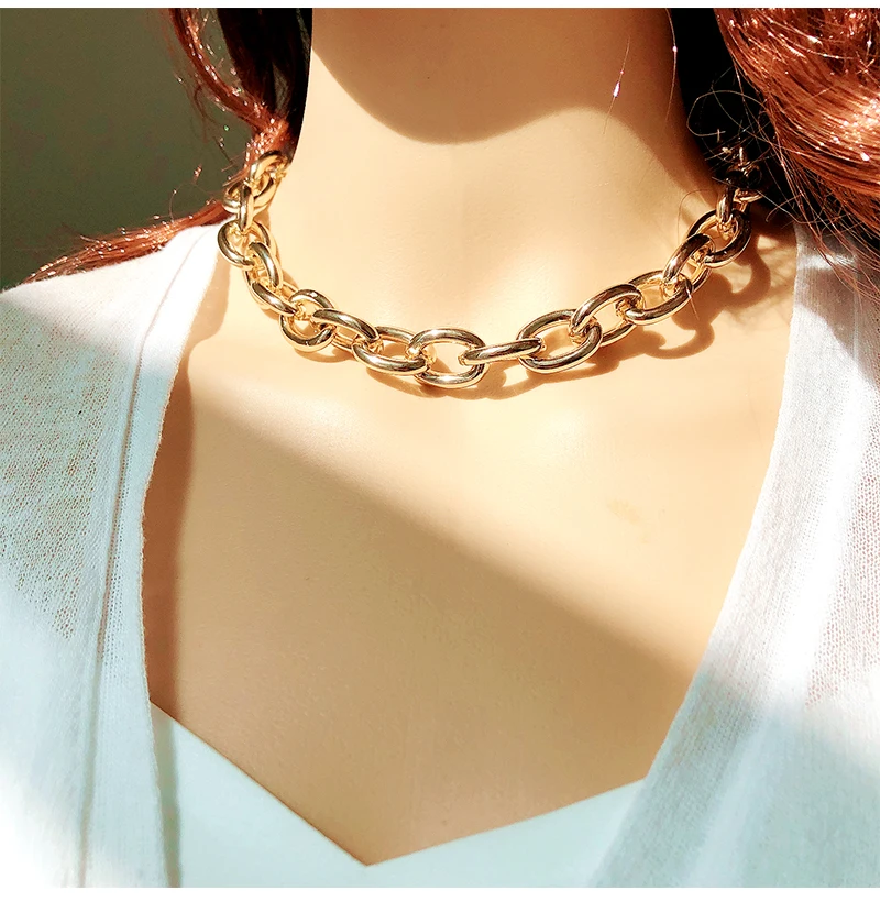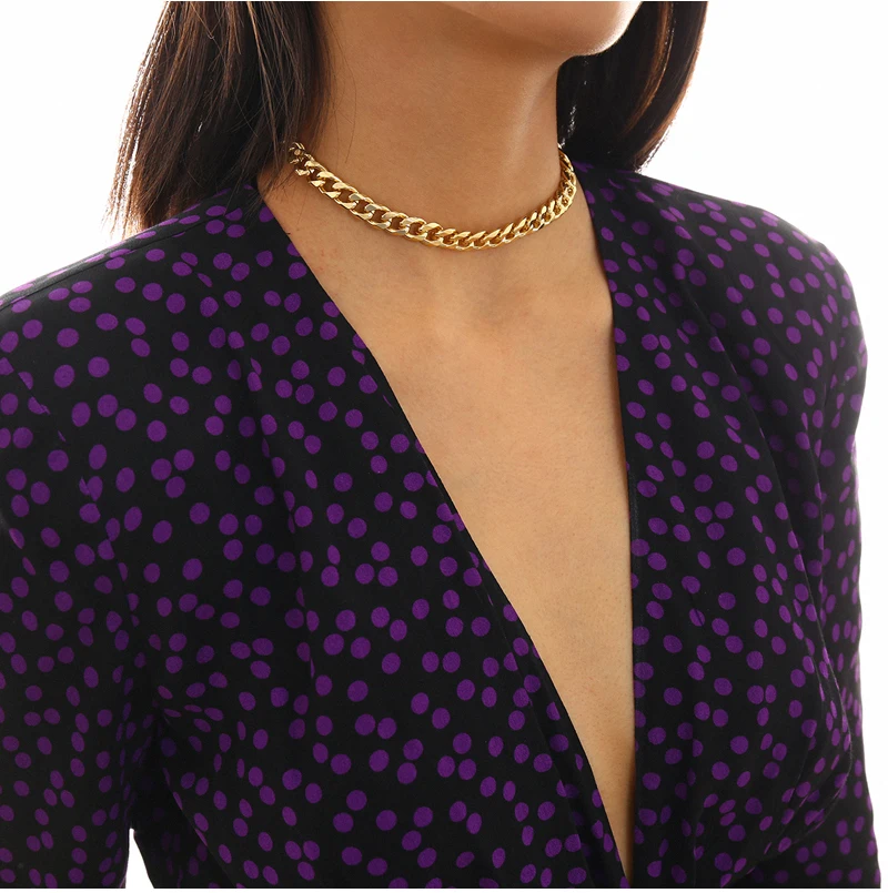 18 K Золотая цепочка панк массивное Стильное ожерелье для женщин