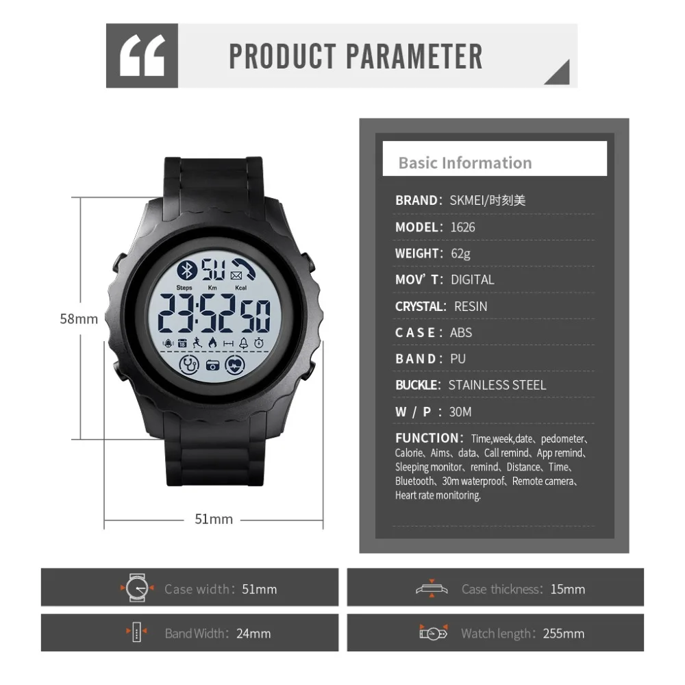 2020 SKMEI мужские спортивные цифровые часы монитор сердечного ритма Калории водонепроницаемые наручные часы reloj hombre Bluetooth-совместимые часы