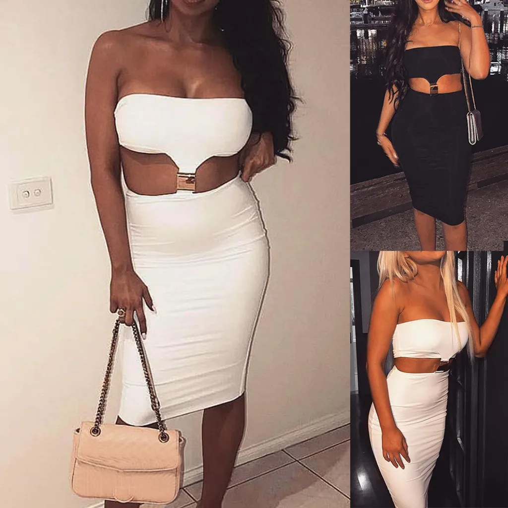Модное женское сексуальное однотонное платье без рукавов с открытыми плечами