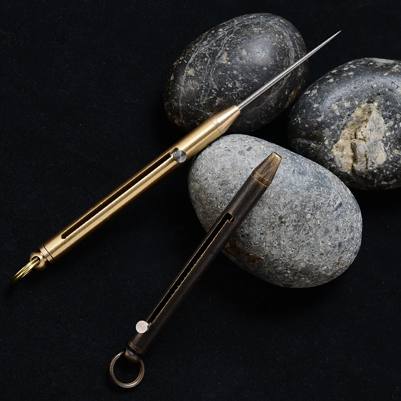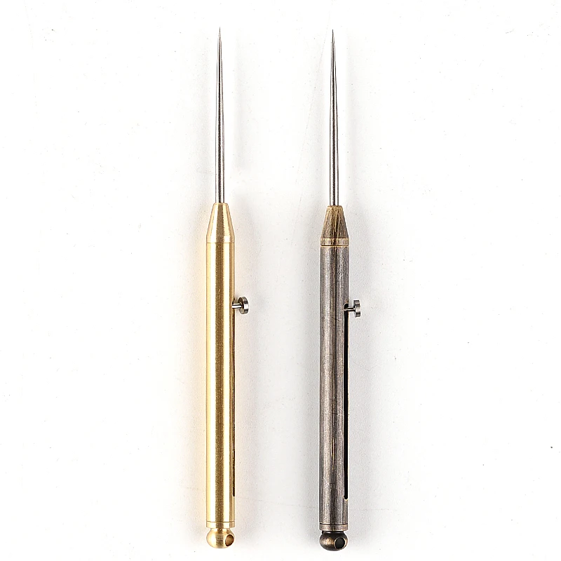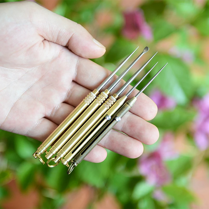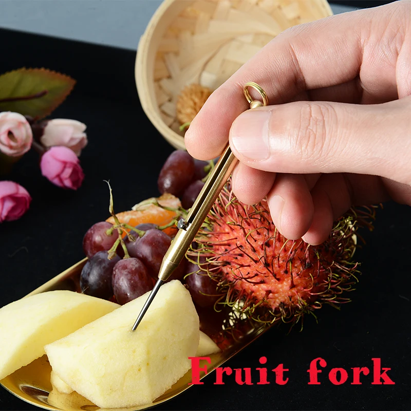 Многофункциональная Выдвижная зубочистка из титанового сплава с латунной ручкой, пружинная портативная вилка для фруктов, инструмент для самозащиты на открытом воздухе