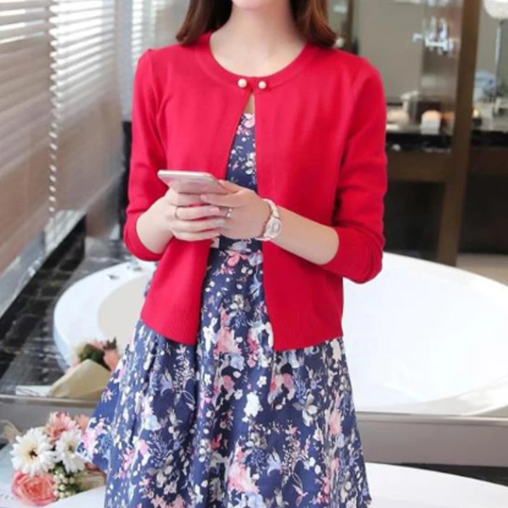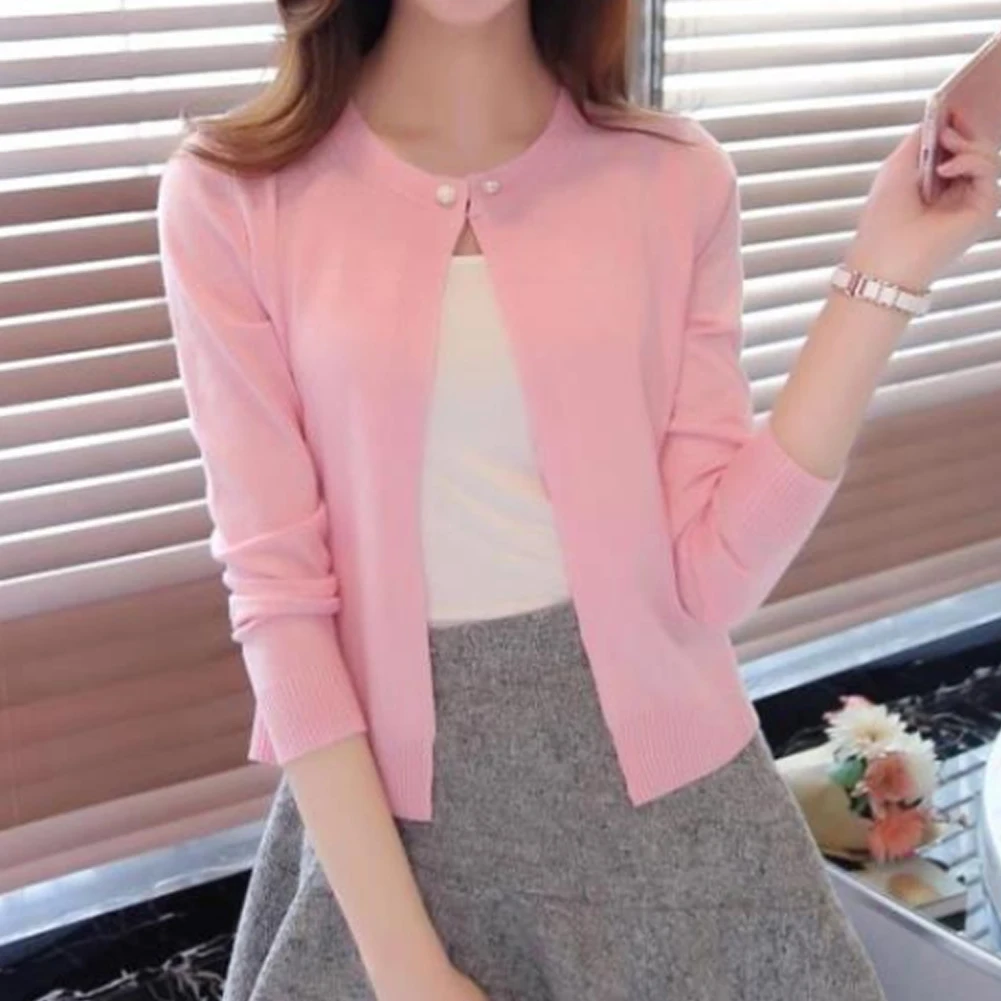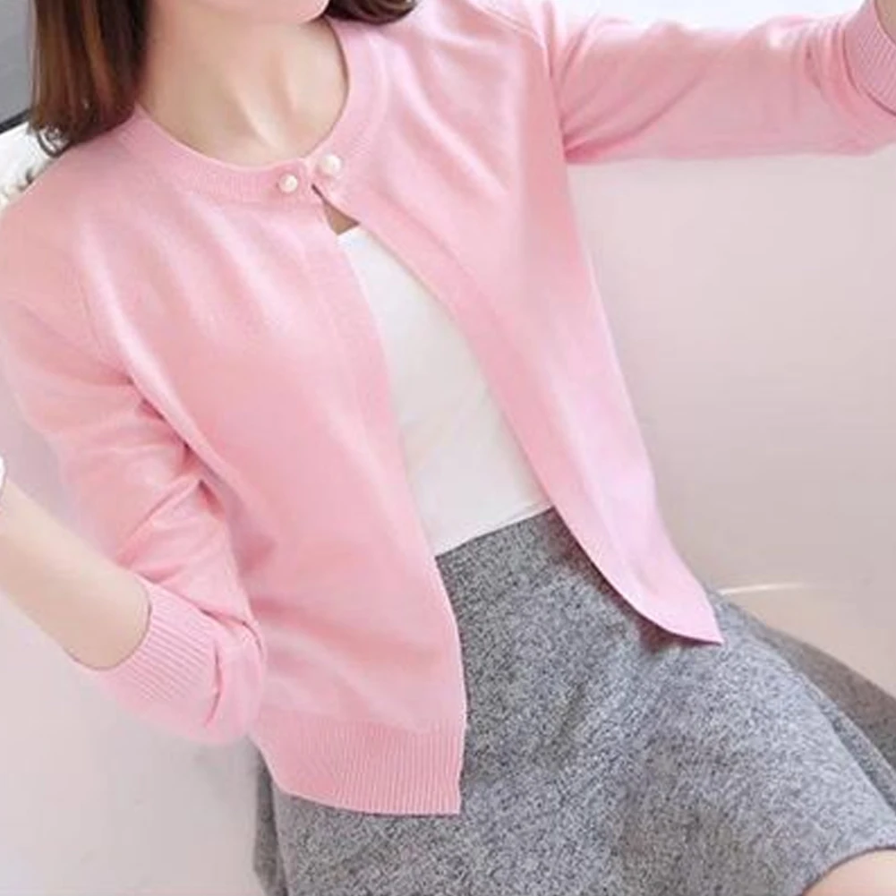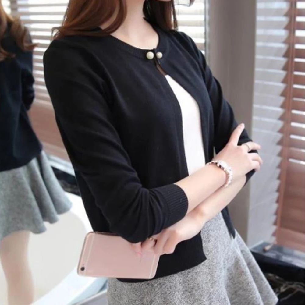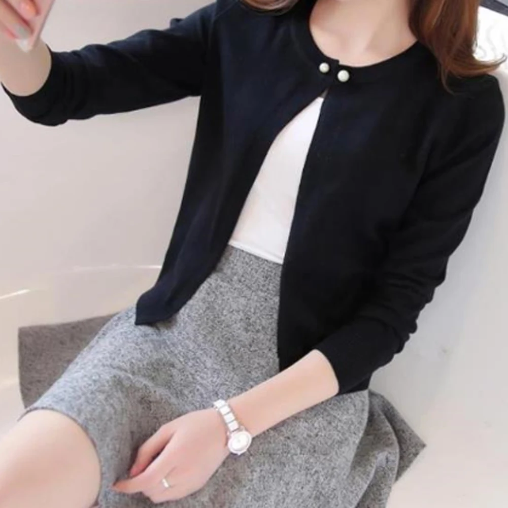 Модный женский кардиган, пальто, однотонный, искусственный жемчуг, на пуговицах, короткий вязаный кардиган, свитер, тонкий Болеро для женщин, кардиган