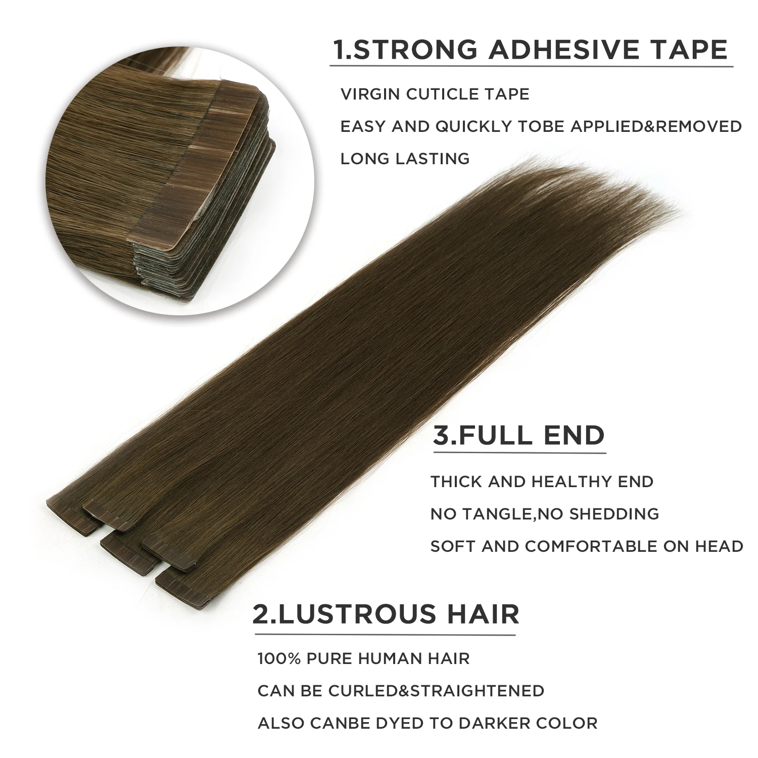 Парики K.S, 20 дюймов, 2,5 г/шт., натуральные человеческие волосы для кутикулы, прямые, бесшовные, на клейкой основе, для наращивания