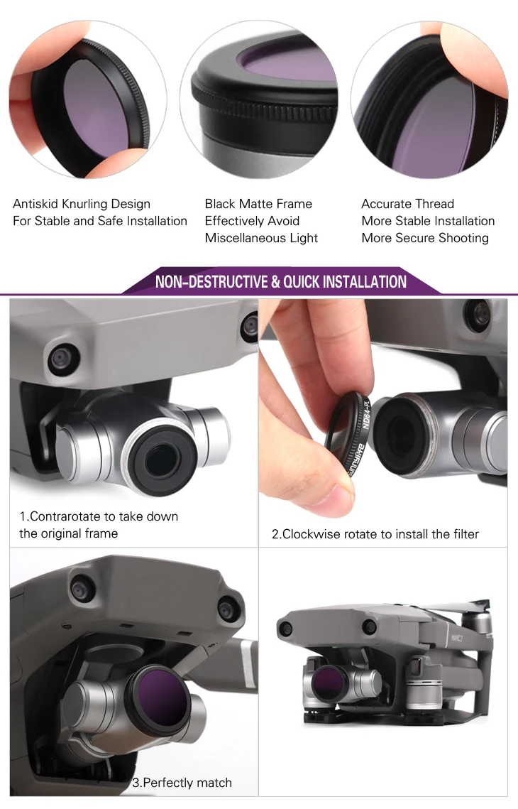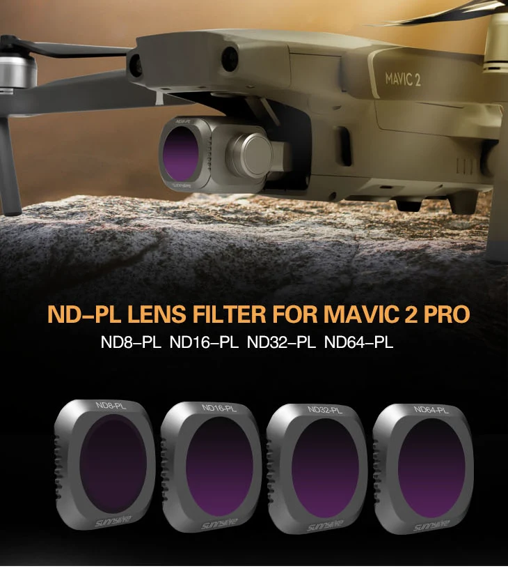 Комплект фильтров для объектива камеры 4 шт. для DJI MAVIC 2 ZOOM/PRO (опционально) Примечание: Не включает Дрон ND-PL Комплект фильтров для объектива камеры в комплекте: ND8-PL, ND16-PL, ND32-PL, ND64-PL