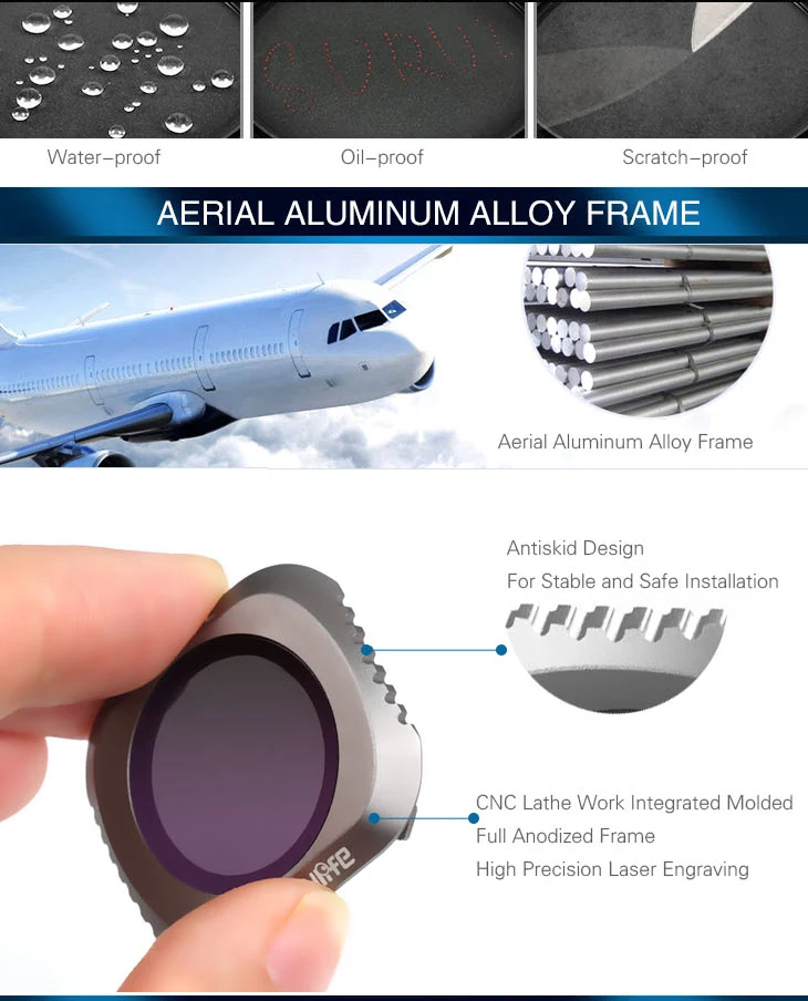 Размер (для mavic 2 zoom): 110x76x24 мм Размер (для mavic 2 pro): 110x86x25 мм 2 вида выбора: для DJI MAVIC 2 ZOOM/PRO Материал линз: оптическое стекло Материал рамы: авиационный алюминиевый сплав