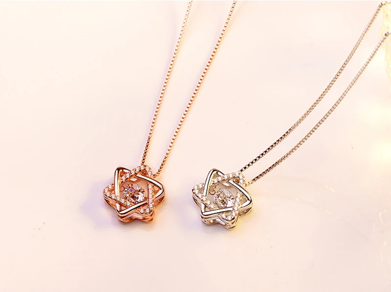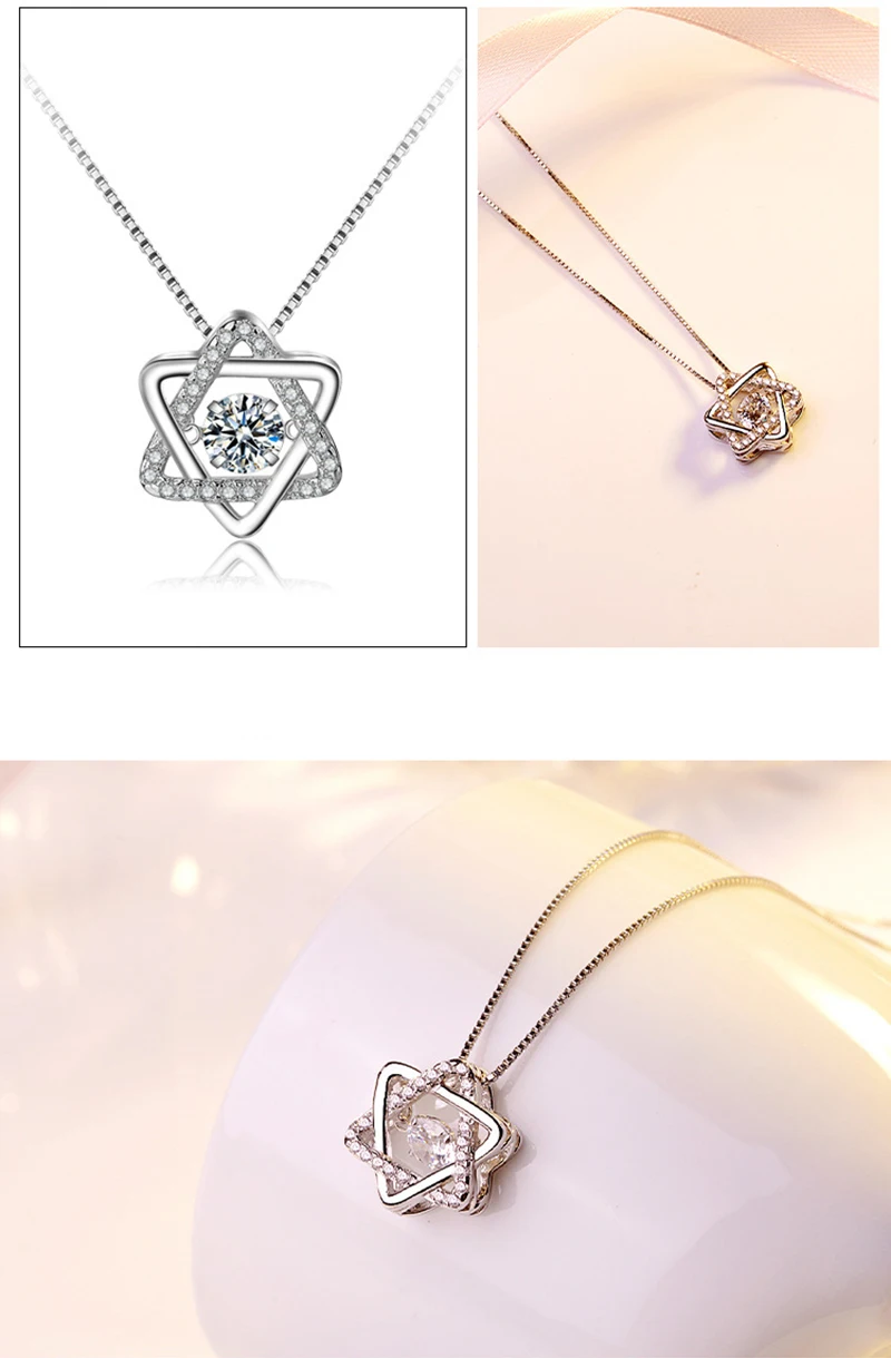WEIGARSTI чистого серебра 925 пробы серебро Roset Золотое сердце ожерелья с подвеской-кулоном для Для женщин Изысканные Jewely небольшой Чокеры ожерелья подарок