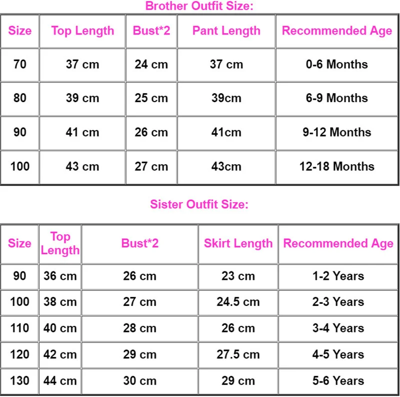1 xBrother Outfit(Romper+Pants)or1 xSister Outfit(Tops+Skirt+Headband)