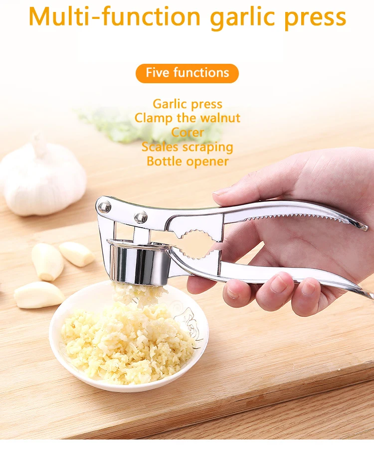1. 5 функций: пресс для чеснока, держатель грецкого ореха, открывалка для бутылок, штопор, выскабливание рыбьей чешуи 2. Хорошее качество, прочный и долговечный 3. Операция простая, профессиональная Энергосбережение 4. Плотно заказанные отверстия, гладкие без блокировки