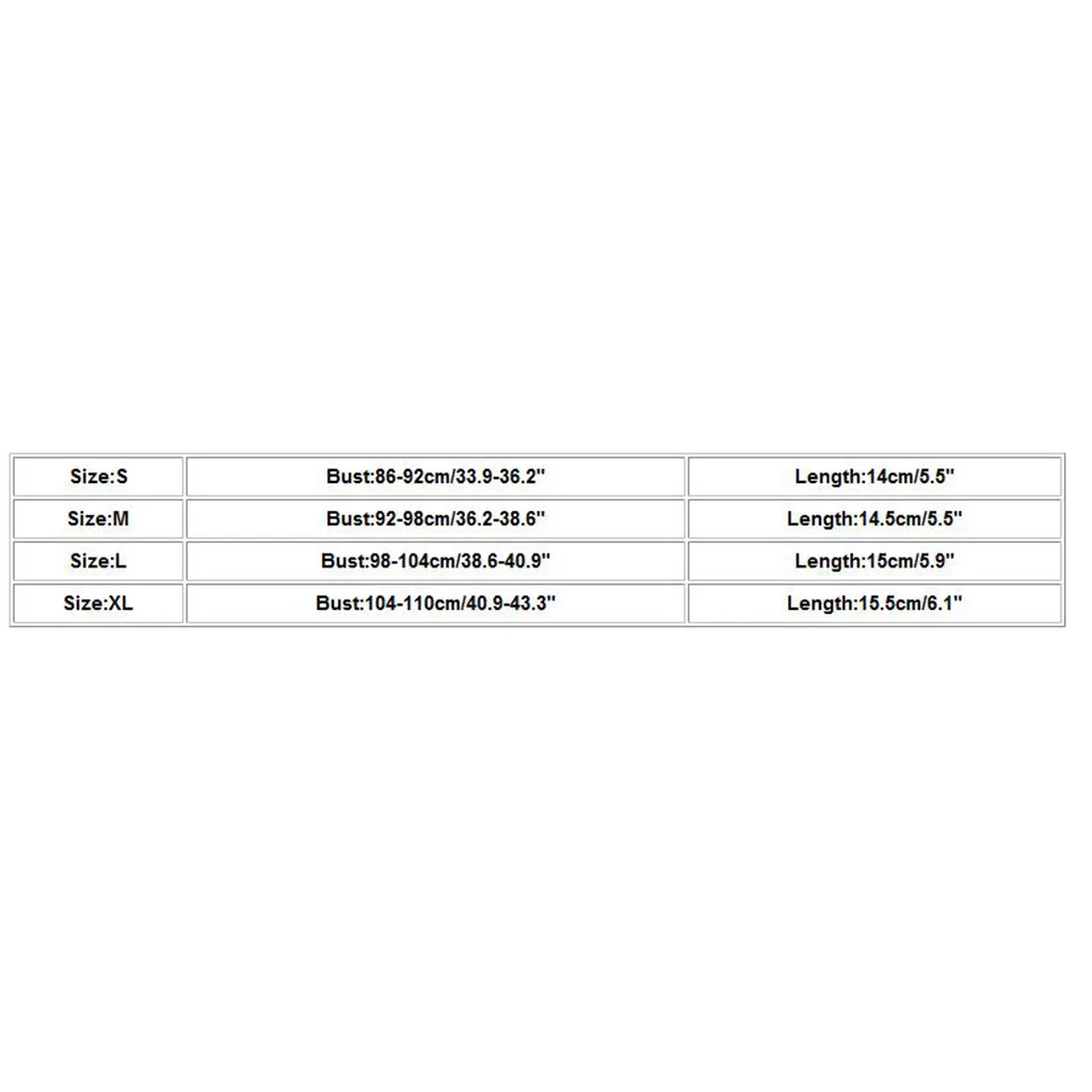 Размеры Обхват груди Длина S 86-92 см/33,9-36,2" 14 см/5,5" М 92-98 см/36,2-38,6" 14,5 см/5,5" L 98-104 см/38,6-40,9" 15 см/5,9" XL 104-110 см/40,9-43,3" 15,5 см/6,1"