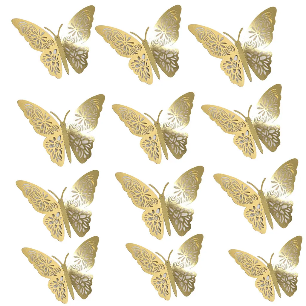 3D роскошный 24 k Золотая Бабочка стикер на стену металлический полый 3D бабочка (12 шт)