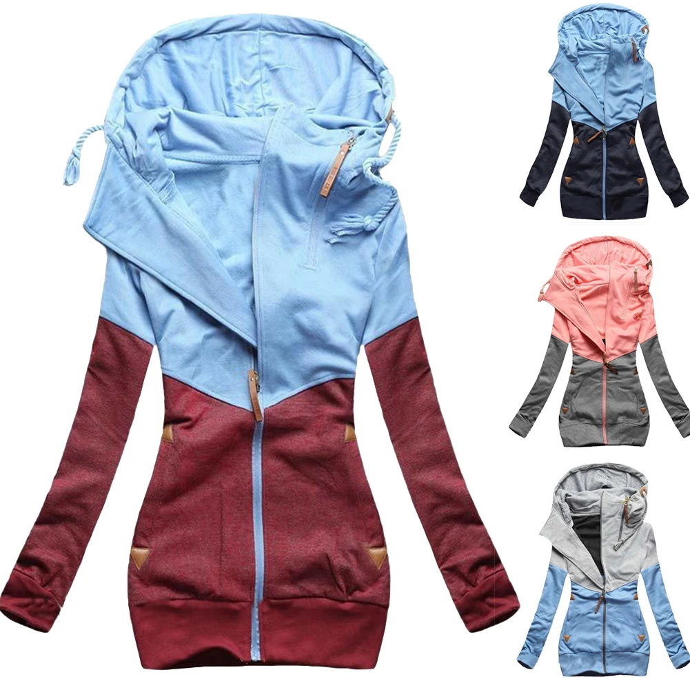 Женская Повседневная куртка на молнии, модная спортивная куртка большого размера с капюшоном и длинными рукавами на весну и осень
