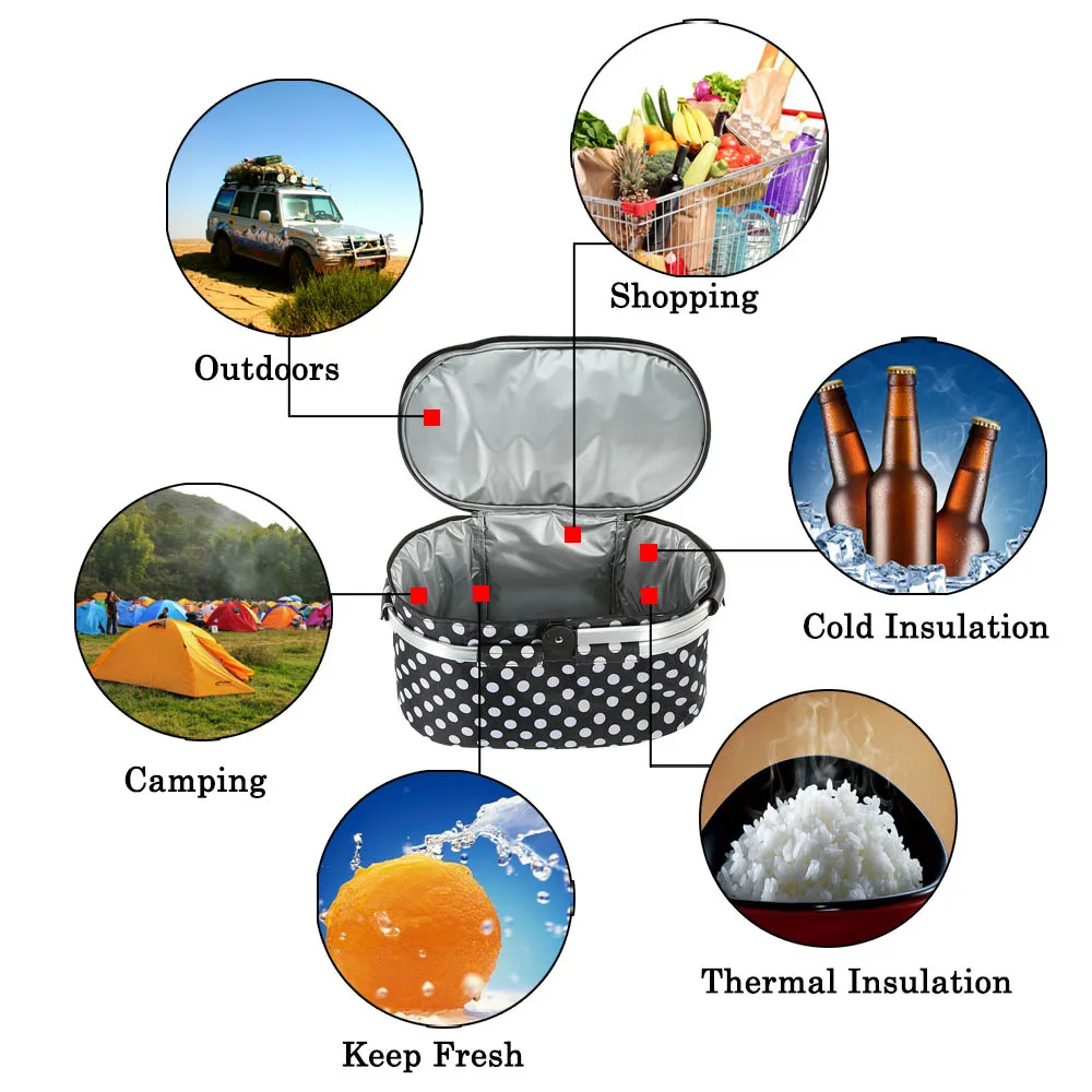 Это Изолированная корзина для обеспечения свежести. Хорошо подходит для покупок, пикника и хранения.