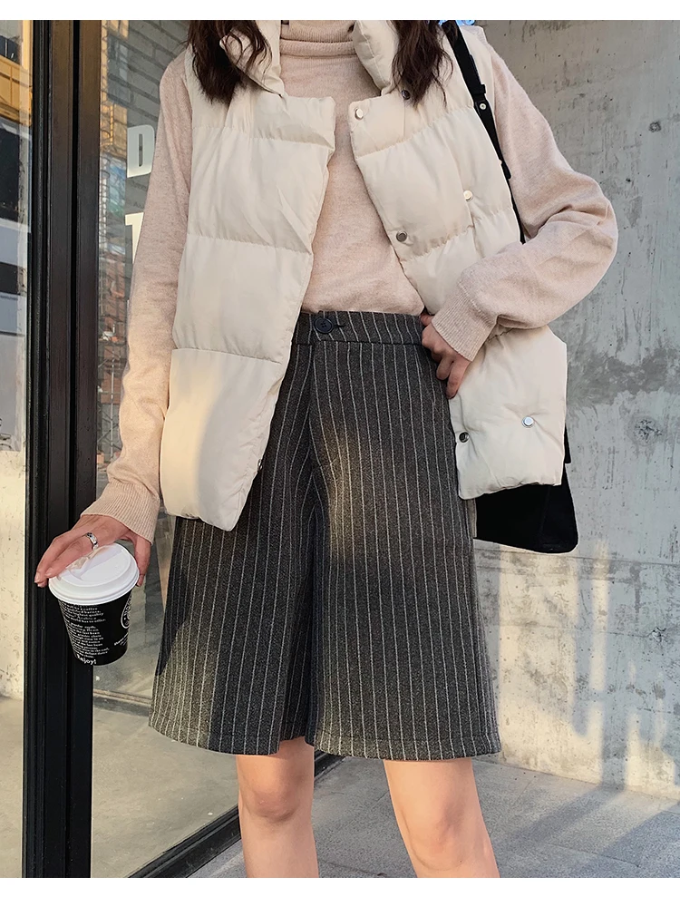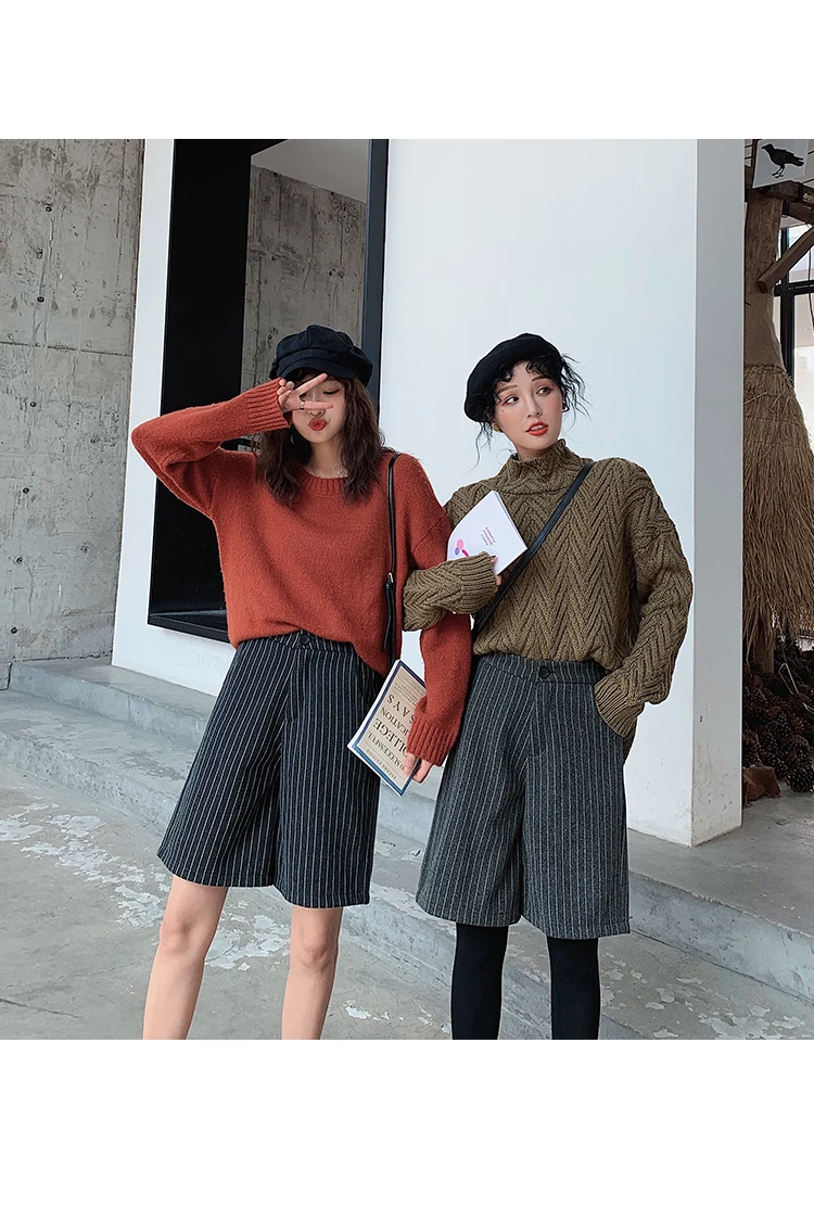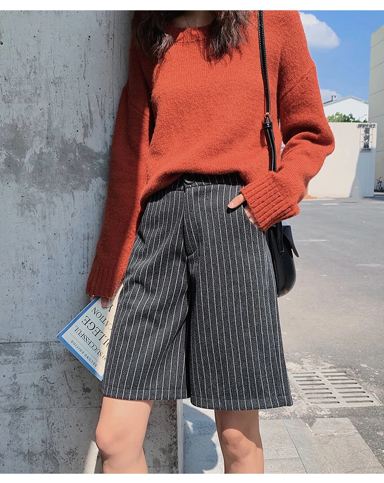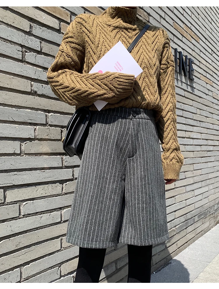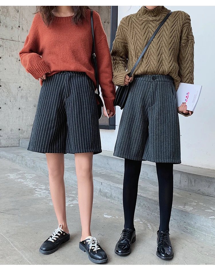 Женские шерстяные шорты до колена на осень и зиму, корейские элегантные свободные шерстяные шорты со шнуровкой и высокой талией