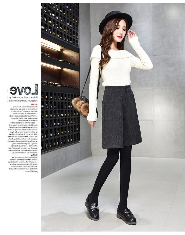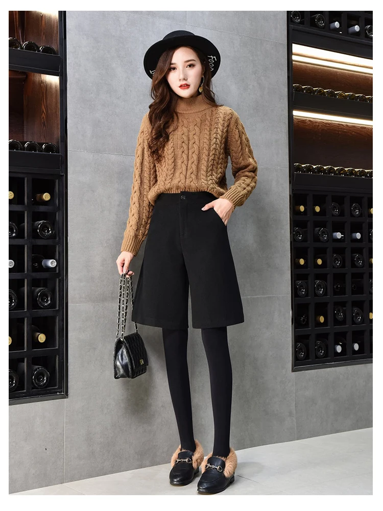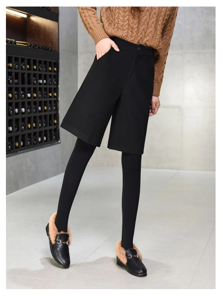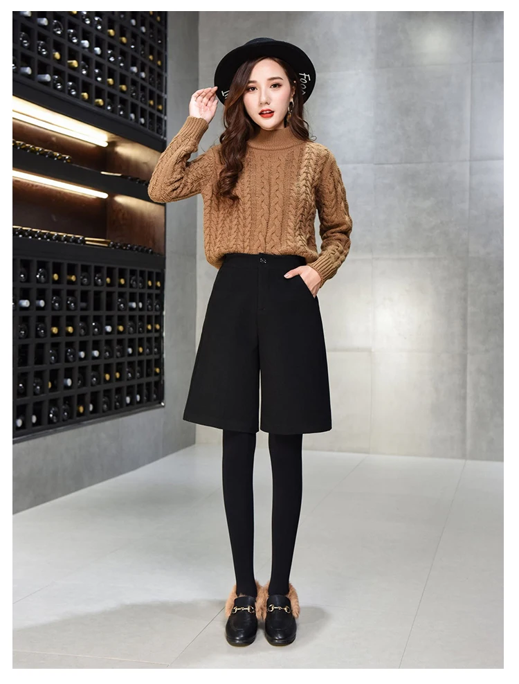 Женские шерстяные шорты до колена, осенне-зимние свободные плотные широкие шорты с высокой талией, большие размеры XXL, женские шорты