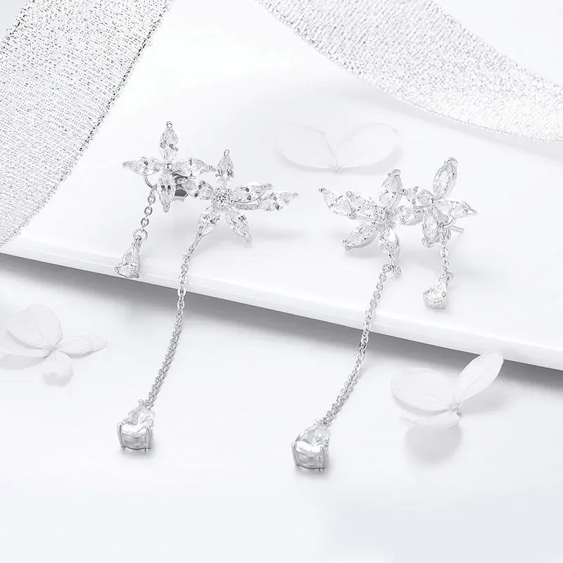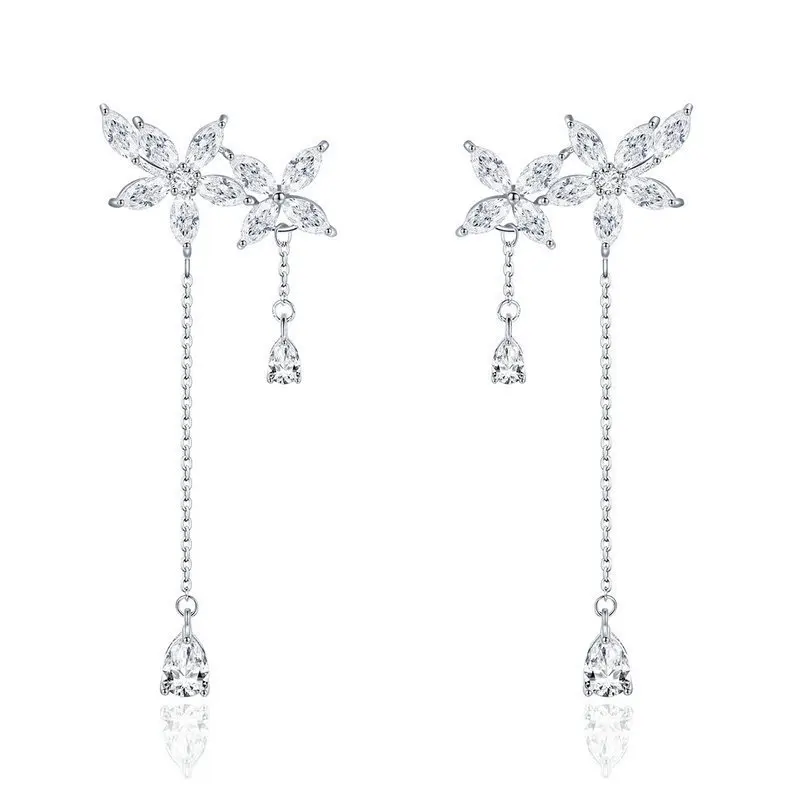 WEGARSTI, серьги из стерлингового серебра 925 пробы, ювелирные изделия, прозрачный кристалл, циркон, цветок, висячие серьги для женщин, девочек, детей, леди, подарок