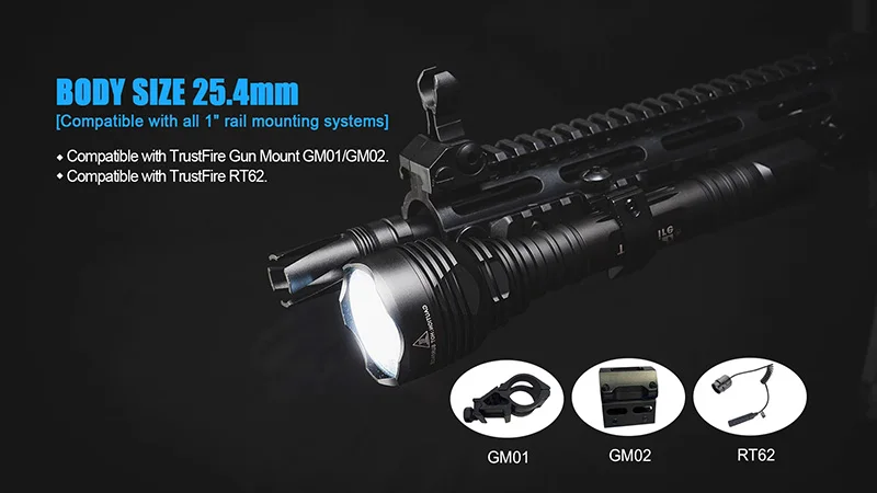 Совместимость с TrustFire gun mount GM01/GM02/GM03 и T62 безголосовой дистанционный переключатель.