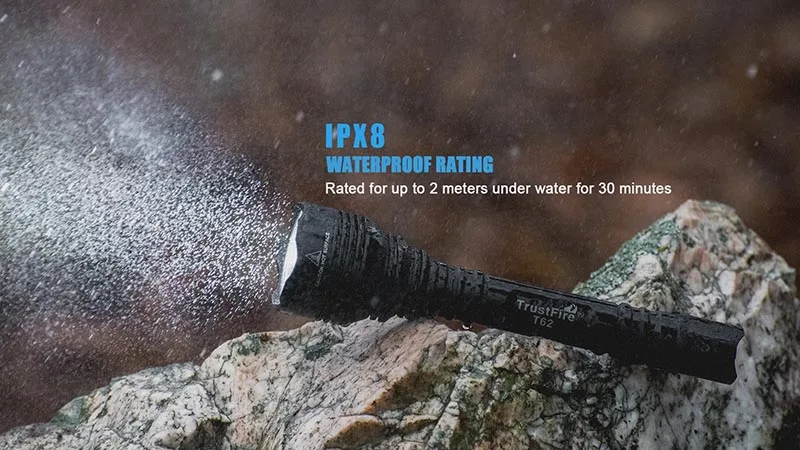 Фонарик cree изготовлен из 6061-T6 авиационного алюминиевого сплава Mil-Spec HAIII анодирование с высокой устойчивостью к царапинам. Он имеет водонепроницаемость IPX8 до 2 метров в течение 30 минут. Отличный светильник для друзей и семьи, которые наслаждаются отдыхом на открытом воздухе.