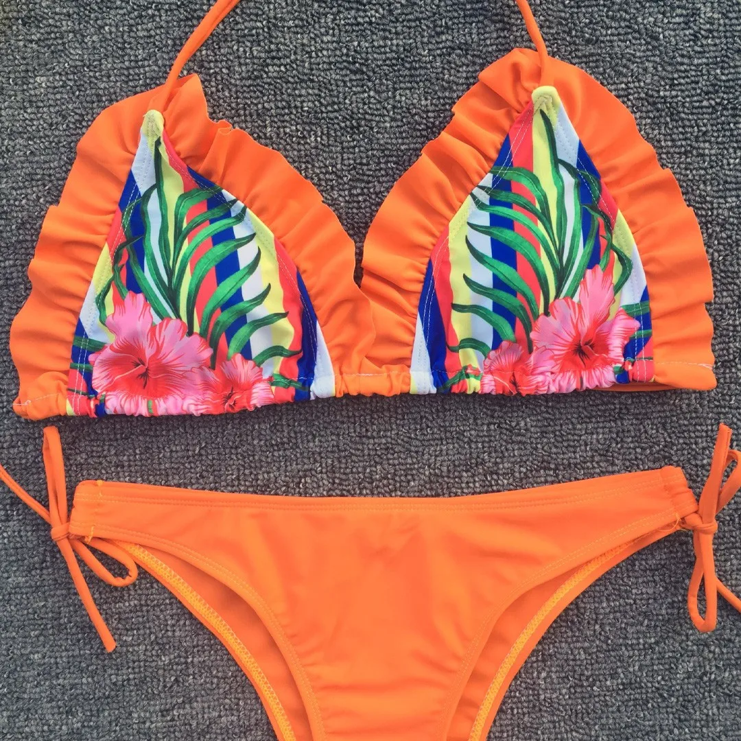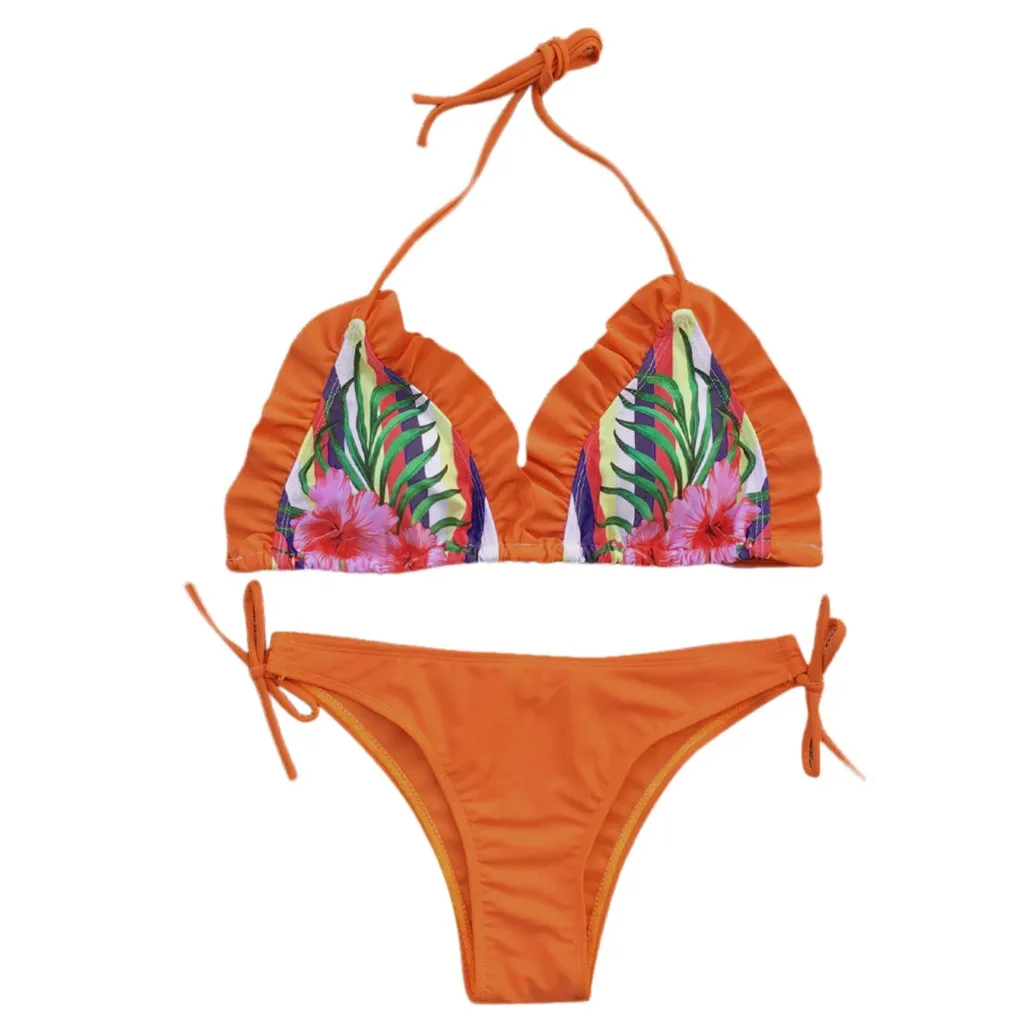 Сексуальный женский купальник с принтом, бикини 2020, купальный костюм с оборками, бандажный летний купальник, пляжная одежда