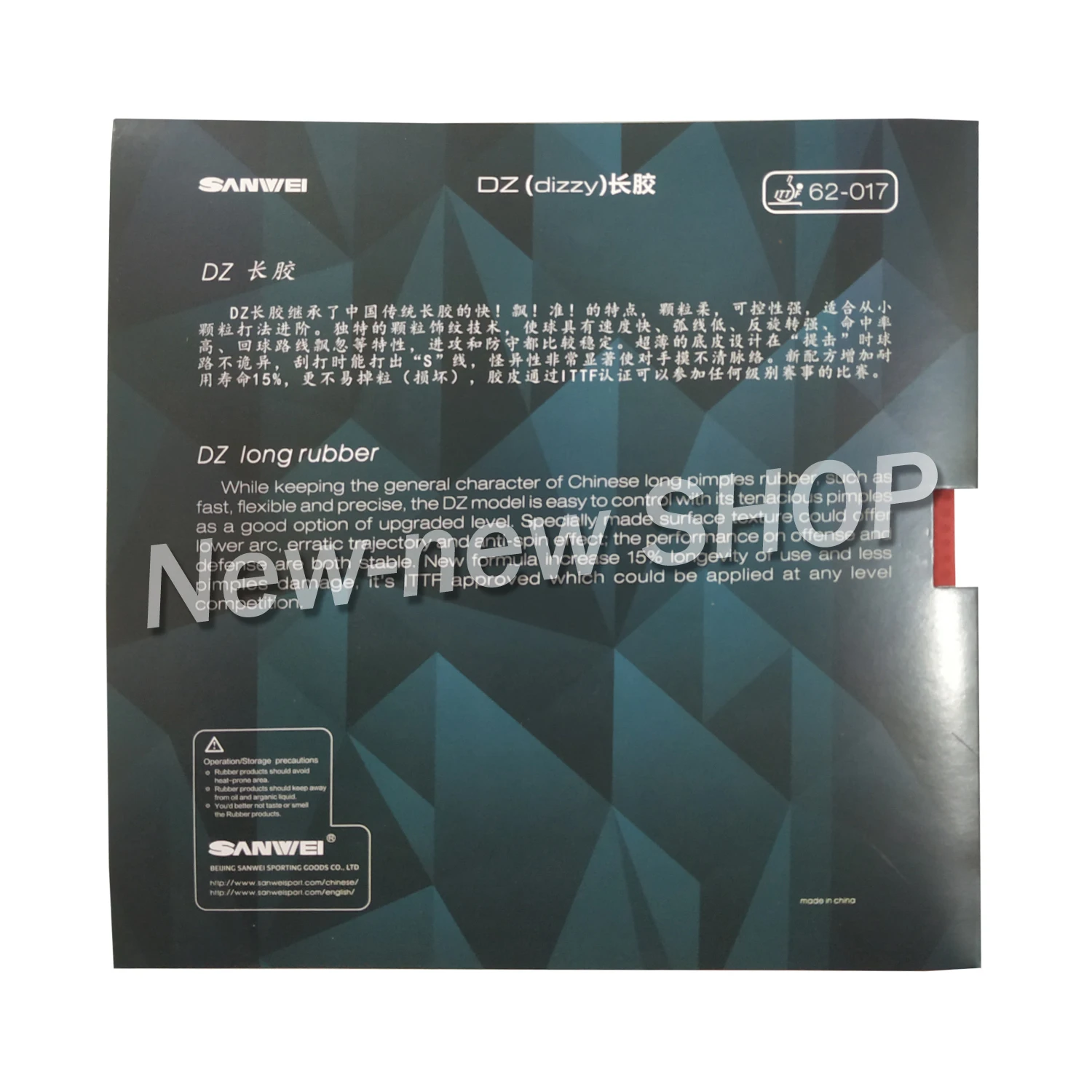 Новинка 2019 SANWEI DZ Pips-long (головокружение, цепкие пипсы, одобрено ITTF) Резиновые прыщи для настольного тенниса Длинный топ лист OX без губки