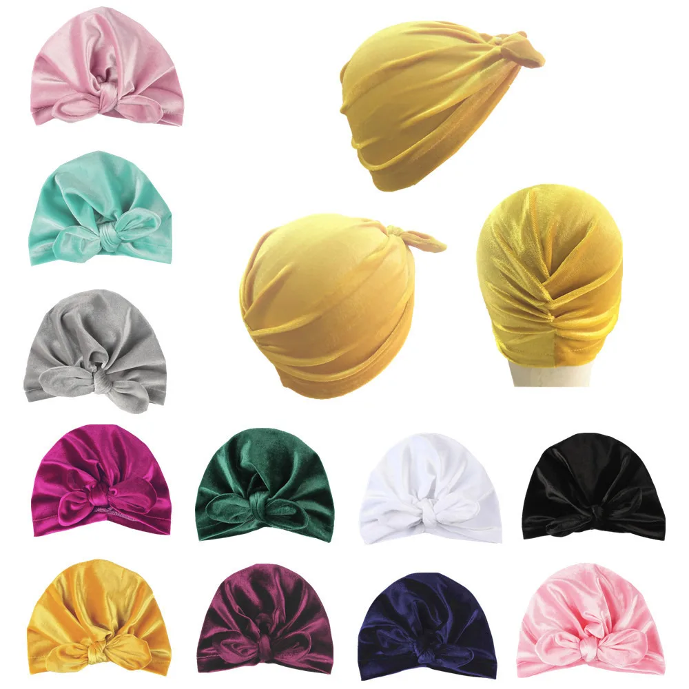 Модная бархатная детская шапка для девочек и мальчиков, Осень-зима, Детская шапка-тюрбан, реквизит для фотосессии, эластичная Младенческая шапочка, аксессуары для малышей