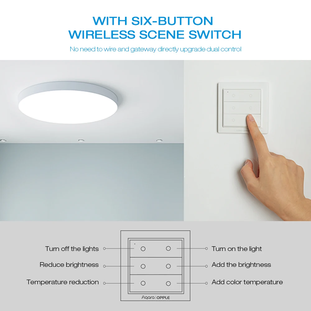 -С шестикнопочным беспроводным переключателем сцены, нет необходимости подключать и шлюз напрямую обновлять двойное управление