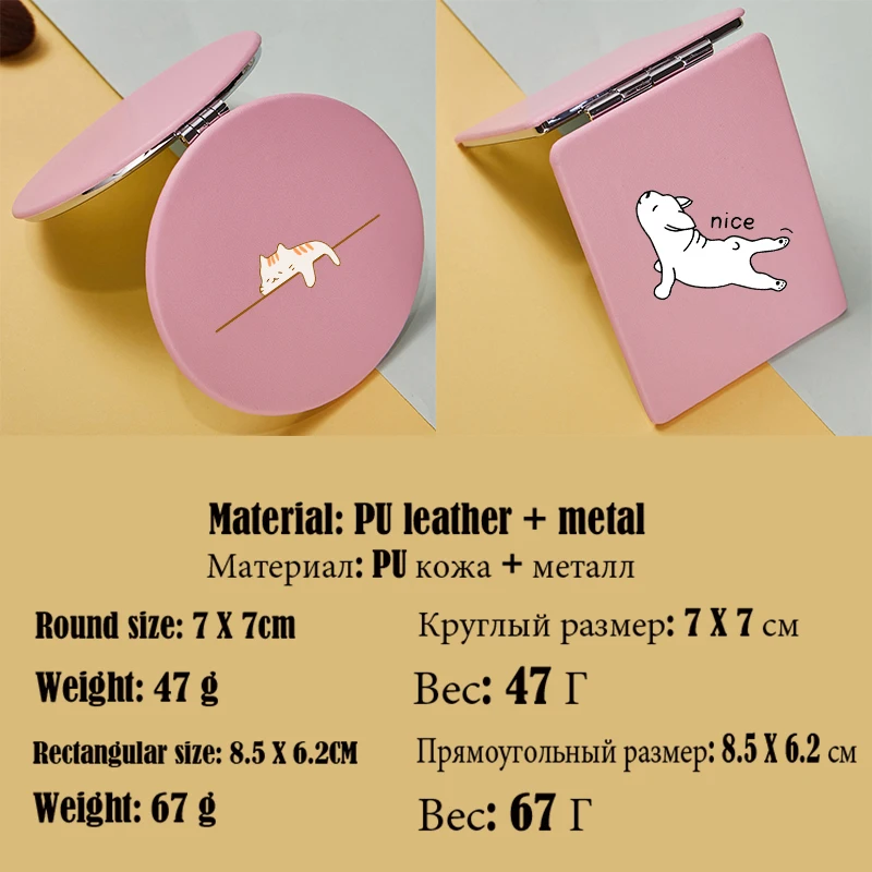 Забавное зеркало для макияжа кошки собаки мини портативное модное двухстороннее складное увеличительное карманное компактное косметическое зеркало для женщин
