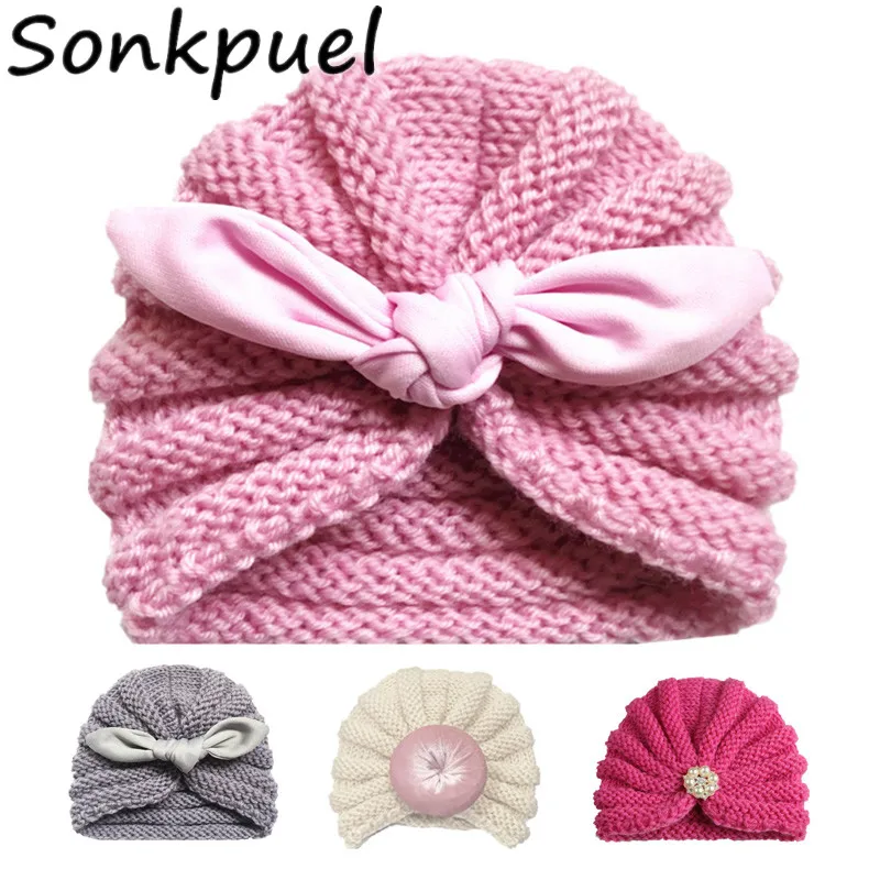 Вязаная детская зимняя шапка для девочек, 12 цветов, жемчужная шапка для малышей, шапки-тюрбан, детская шапка, шапка для новорожденных, аксессуары для девочек и мальчиков