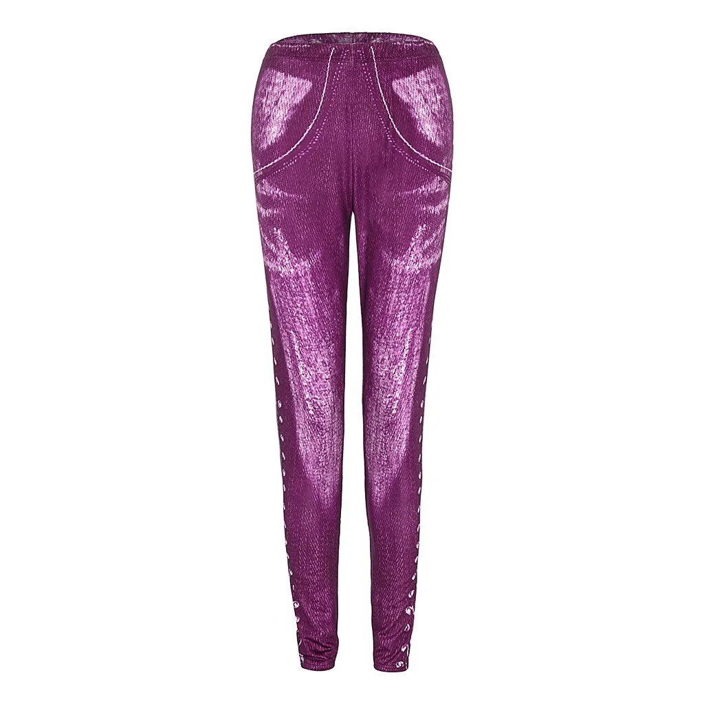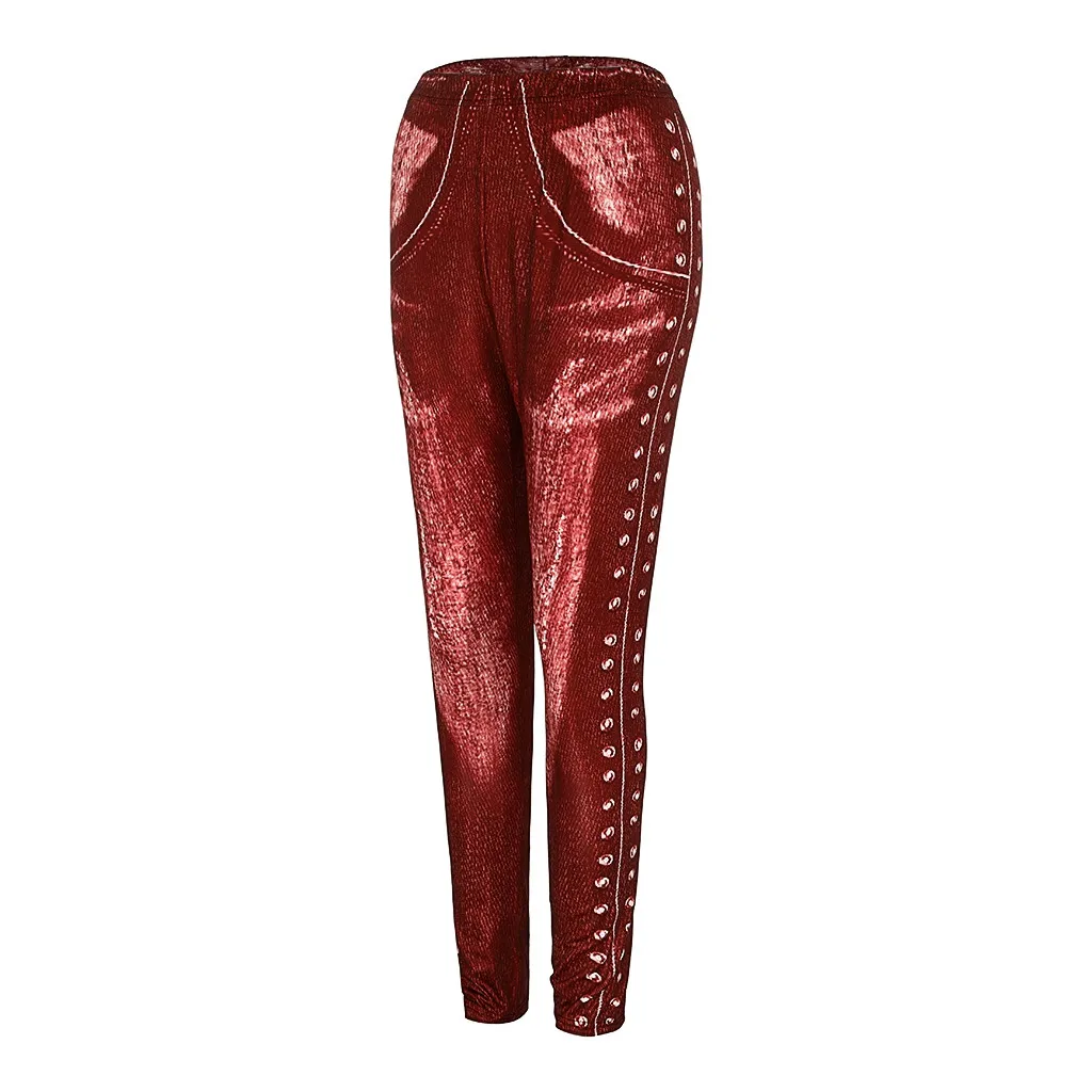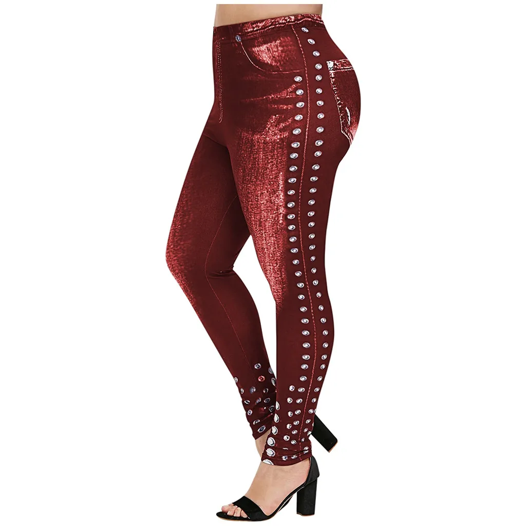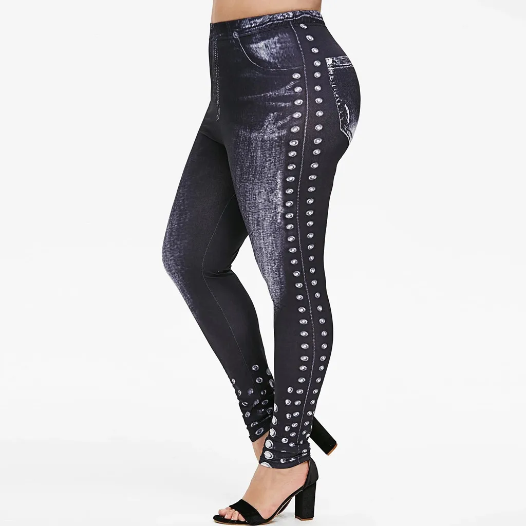 Женские повседневные леггинсы размера плюс с имитацией ковбоя с эластичной резинкой на талии