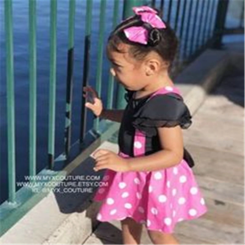 Одежда для маленьких девочек; Комбинезон + платье на бретелях + Бант; Костюм Микки