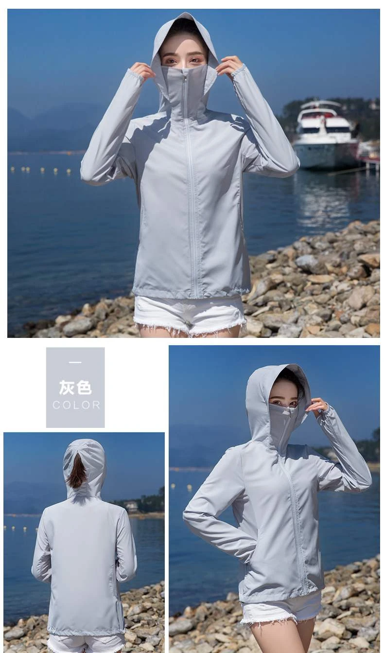 Солнцезащитная одежда с капюшоном для женщин, летняя тонкая быстросохнущая дышащая одежда с защитой от ультрафиолета, Спортивная Солнцезащитная куртка для прогулок на открытом воздухе