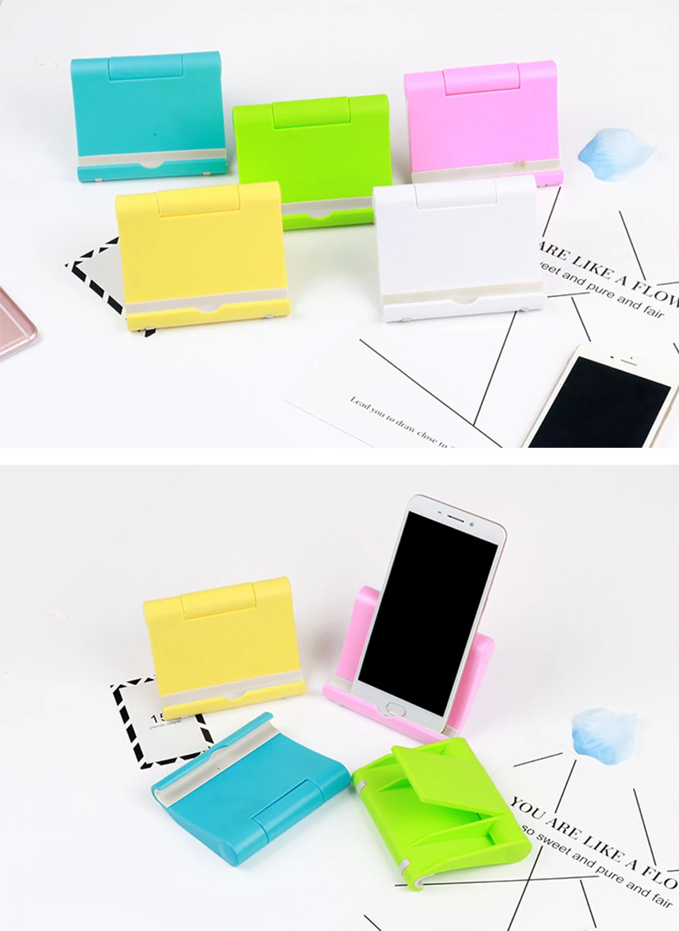Наименование: держатель для телефона Материал: PE Характеристики: мини и легкий, может быть уложен и легко носить с собой Применение: прикроватный столик Поддержка нескольких размеров мобильных телефонов/планшетов Описание: 1. Регулируемый держатель: 270 градусов вращающийся держатель для телефона, свободно регулировать любой угол, как вам нравится, для удобного просмотра. 2. Свободные руки: Идеально подходит для просмотра телефона, просмотра фильмов, прослушивания музыки, GPS и телефонных игр в спальне, тренажерном зале, офисе, на выставке и т. д. 3. Универсальный мобильный телефон, подходит для различных мобильных телефонов на рынке, для удовлетворения ваших различных потребностей. 4. Стильный и инновационный мобильный телефон делает вашу жизнь более удобной и позволяет вам иметь хорошее настроение каждый день. Посылка включает в себя: 1 * Мобильный телефон держатель