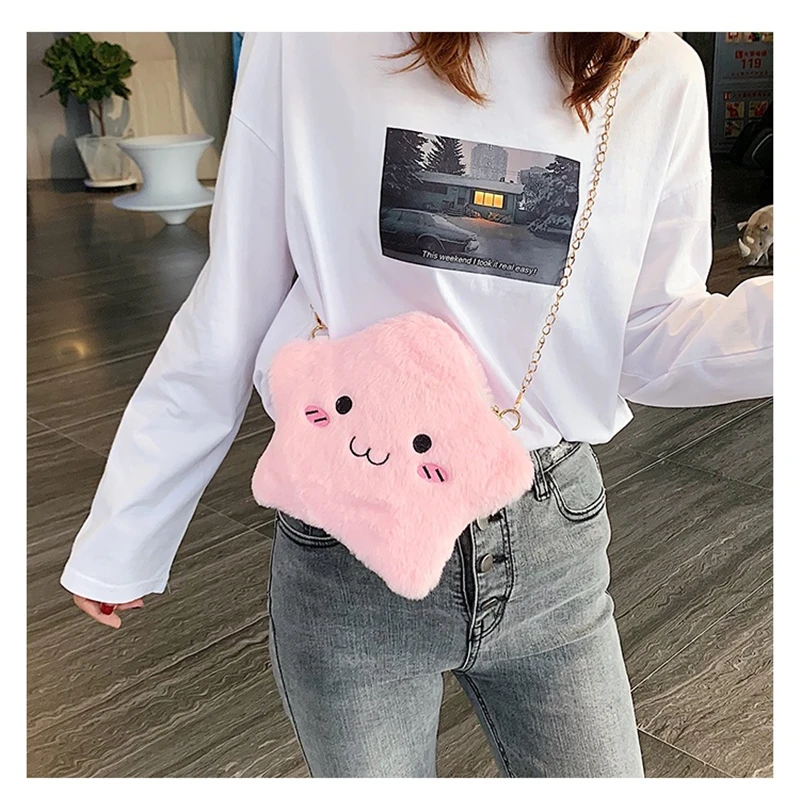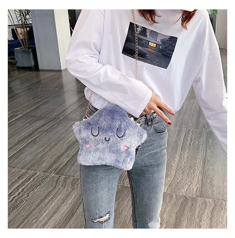 Новинка 2020, модная женская сумочка, простая милая сумка из искусственной замши с мультяшными звездами, Повседневная трендовая сумка-мессенджер через плечо, сумка для телефона, женский кошелек