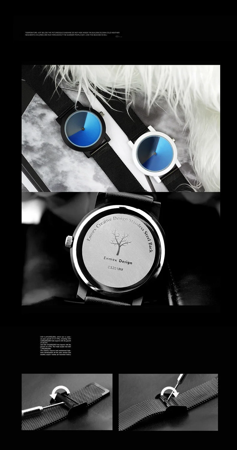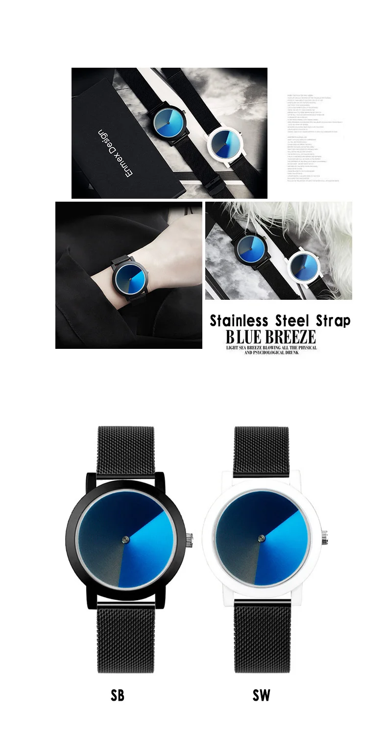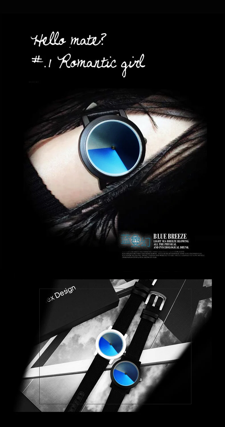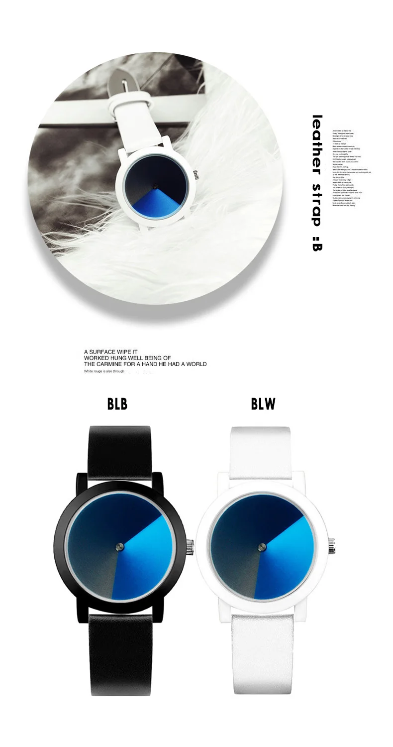 Пожалуйста, посмотрите подробную информацию, как показано ниже * Чехол для часов: сплав с тонким покрытием (черный, серебристый, белый) * Ремешок для часов: ремешок из натуральной кожи или трикотажный материал из нержавеющей стали * 30 метров водонепроницаемый, отвечает требованиям повседневной жизни • Общая длина: 23 см Диаметр 3,8 см Thickness0.8cm * Для предпочтений молодых людей Креативный дизайн/психоделический синий простой. Лицо маленькое, подходит для девушек и женщин