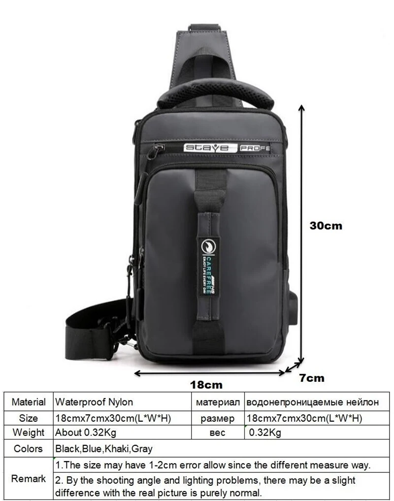 USB зарядка Водонепроницаемая нейлоновая нагрудная сумка для мужчин для отдыха и спорта Велоспорт сумка через плечо многофункциональные дорожные сумки через плечо