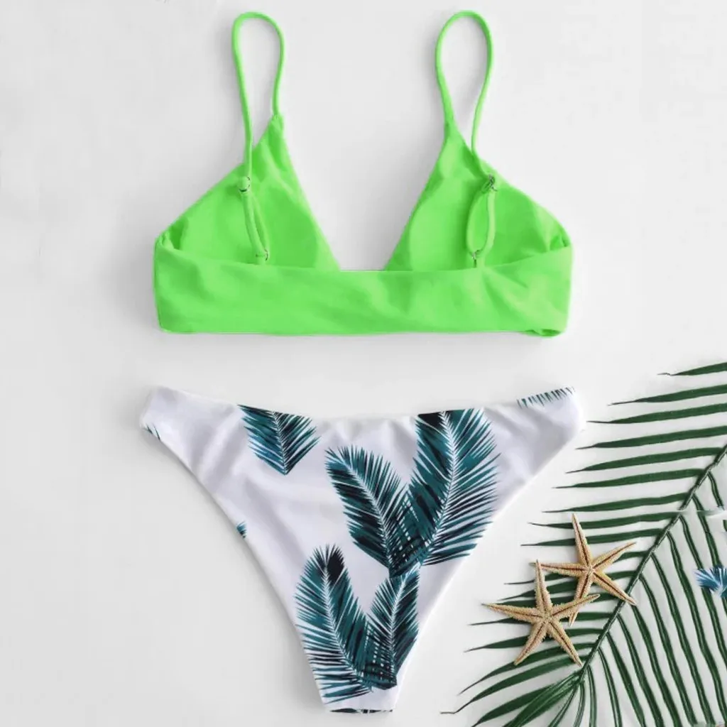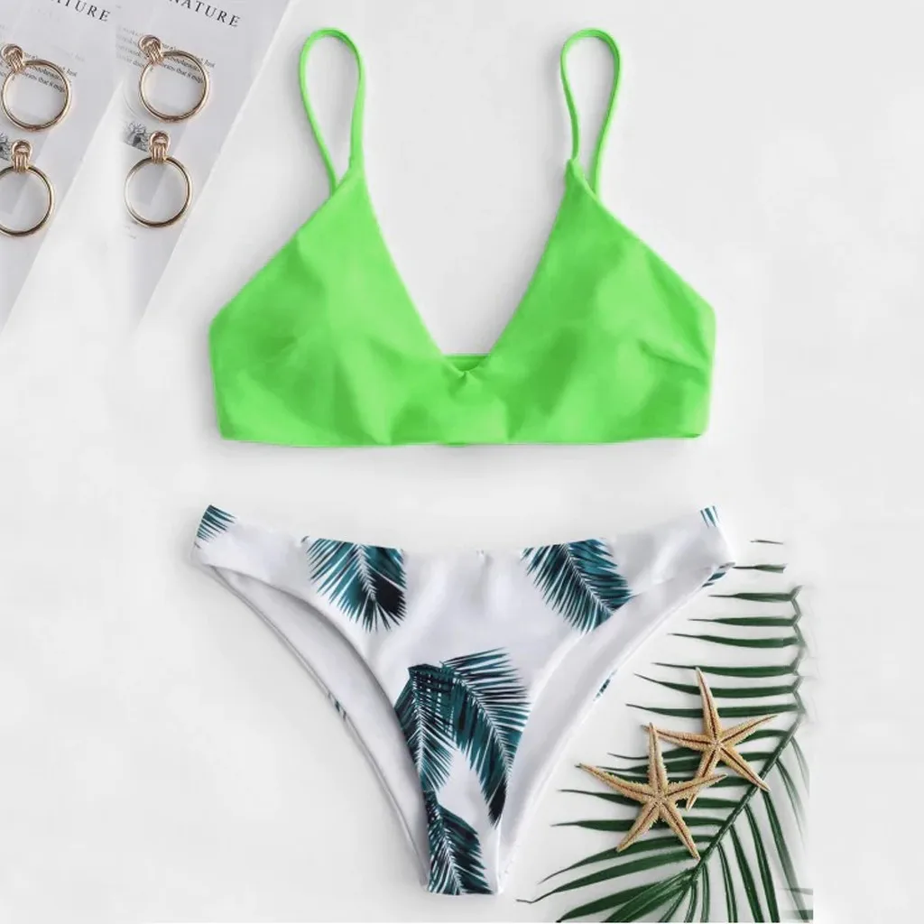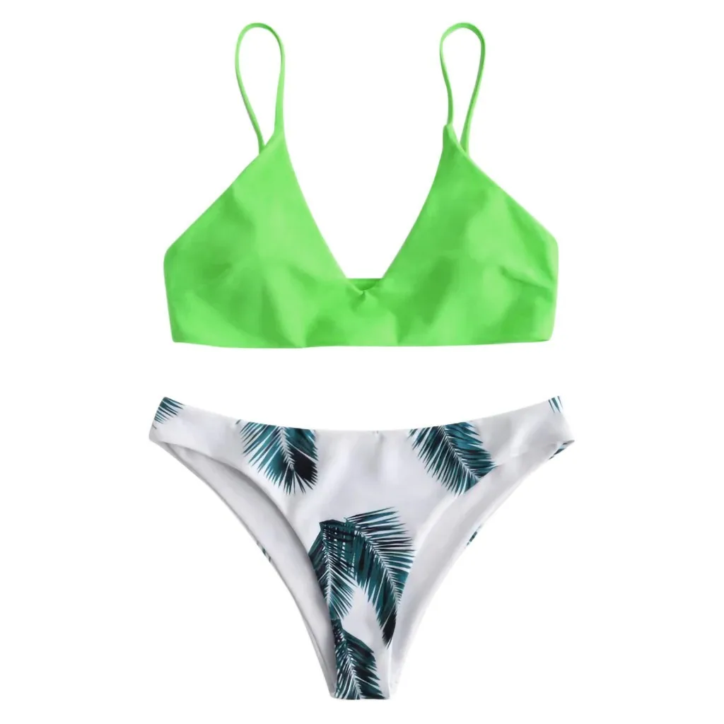 Модный женский купальный костюм с принтом листьев, пуш-ап, с подкладкой, комплект нижнего белья, высокое качество, бразильский женский удлиненный комплект нижнего белья
