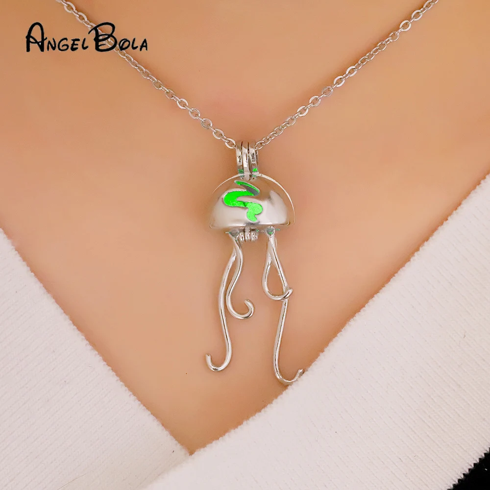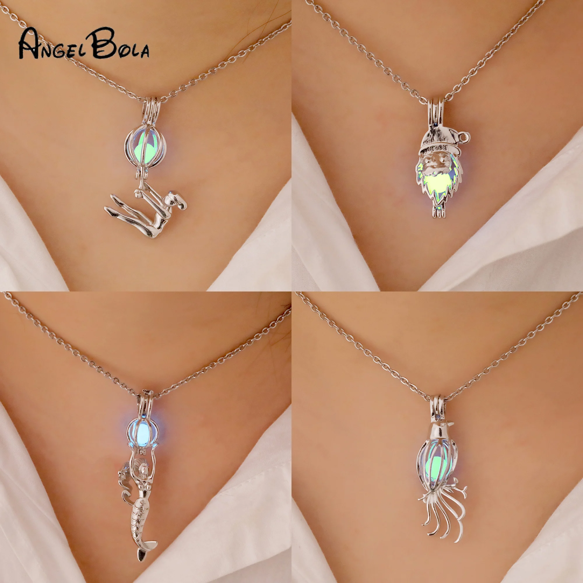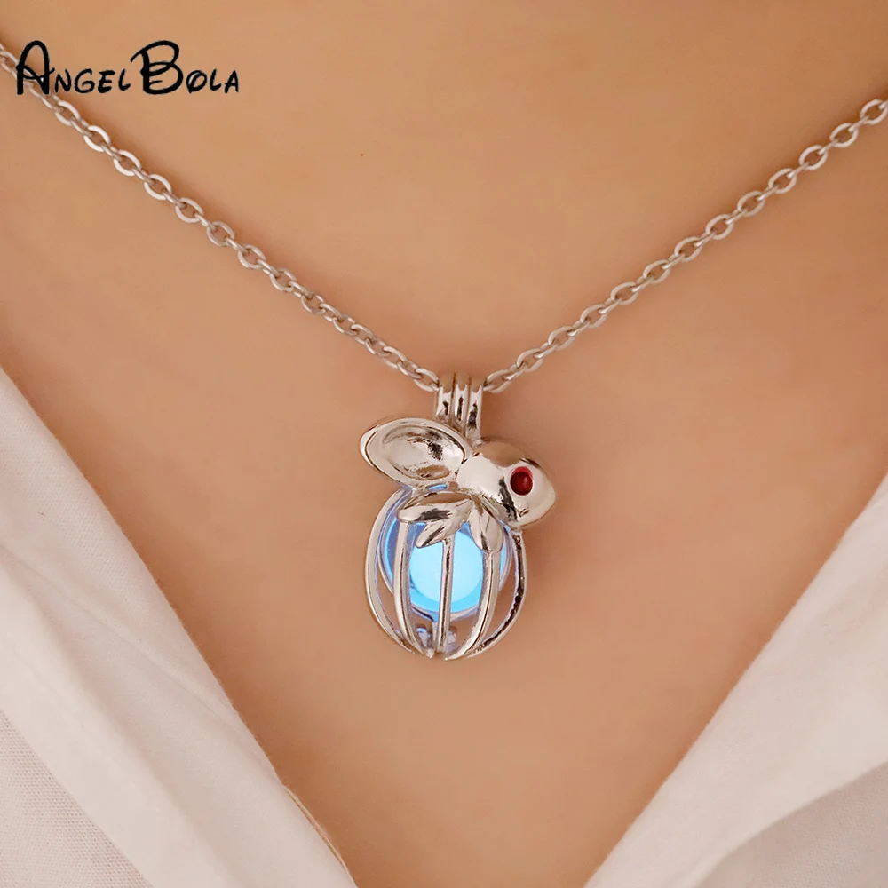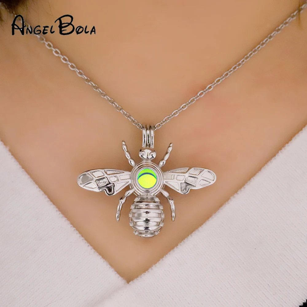 Хит продаж, светящаяся клетка с изображением ангела болы шмеля, 925 серебряная цепочка, кулон, светящийся камень, ожерелья на День святого Валентина, Женские Ювелирные изделия, новинка