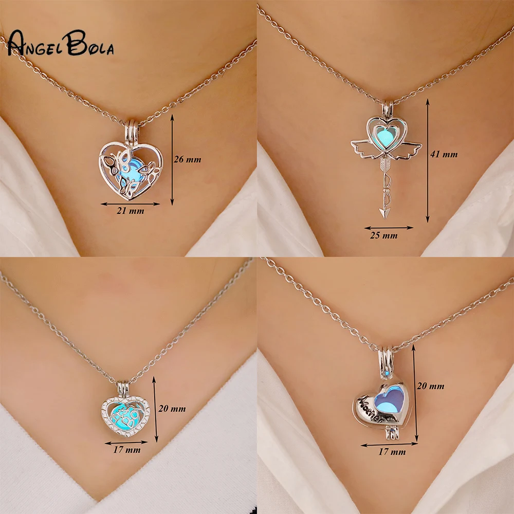 Ангел бола сердце с крыльями кулон желаний, 925 Серебряная цепочка натуральный светящийся камень подвески женские ювелирные изделия подарок на день Святого Валентина