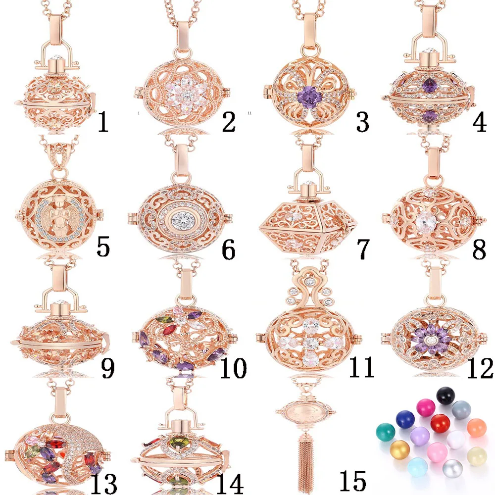 3 разных цвета Стили Мода гармония Циркон Гальваническое настоящее золото Ангел бола клетка dendant звонящий ожерелье женские ювелирные изделия