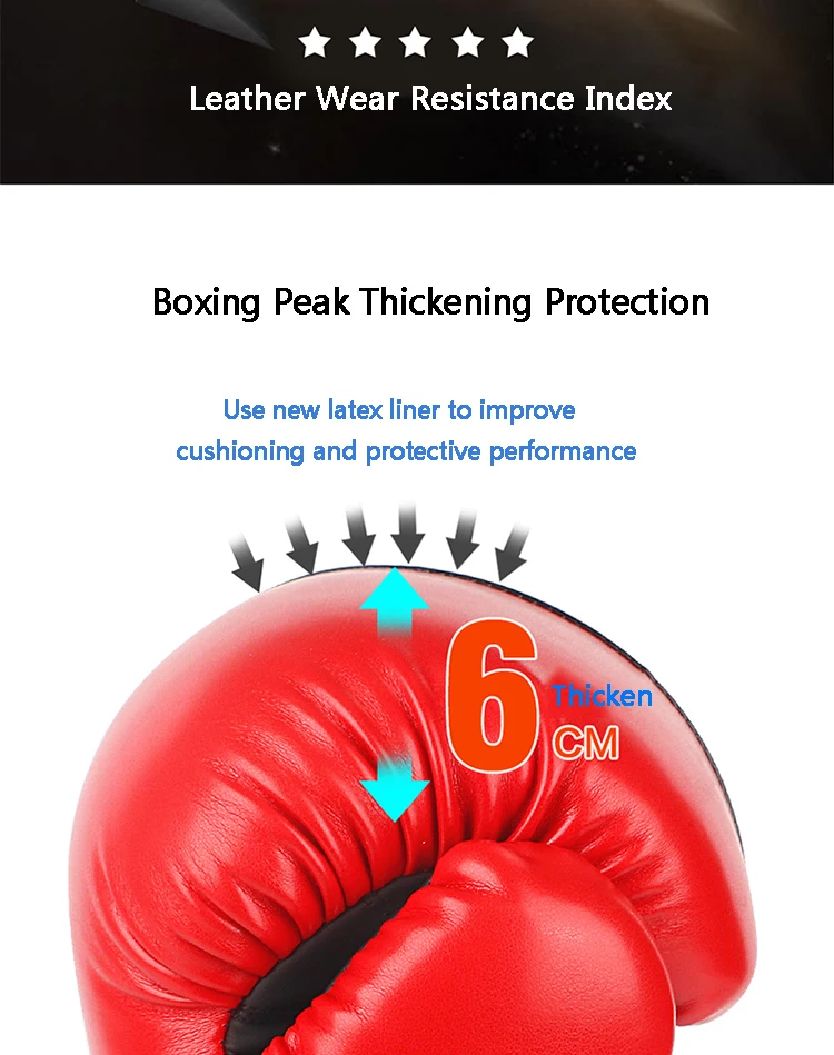 Название: профессиональные боевые боксерские перчатки Размер: 6 унций 8 унций 10 унций 12 унций Цвет: черный/красный/синий/белый Материал: Высококачественная ПУ, латексная поролоновая подкладка Характеристики: полная вентиляция ладони + новая уплотненная латексная подкладка + антиразрывная ткань + утолщенные пики ударов + Расширенная защита на липучке