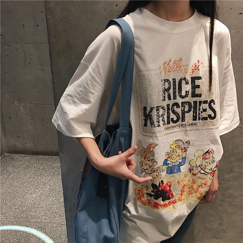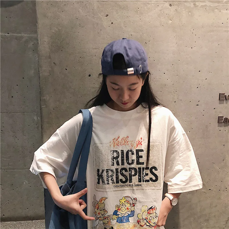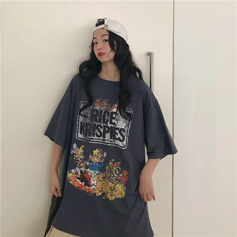 Винтажные карликовые летние футболки с мультяшным принтом, женские повседневные футболки больших размеров d, забавные Длинные Топы с буквенным принтом размера плюс с коротким рукавом W438