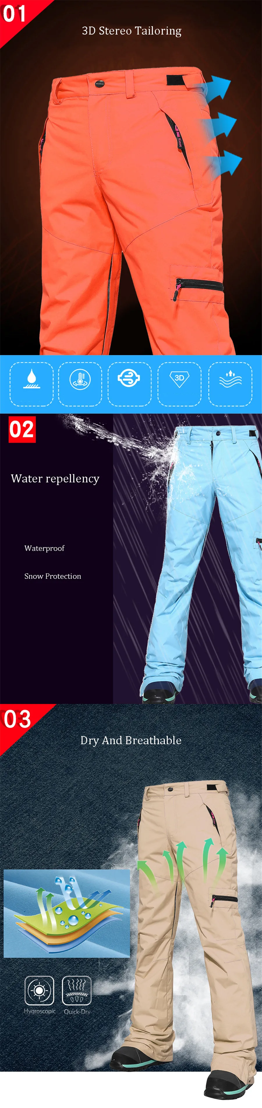 Высокое качество, женские теплые лыжные штаны, ветрозащитные водонепроницаемые штаны, двойная защита от снега, теплые зимние лыжные штаны для женщин