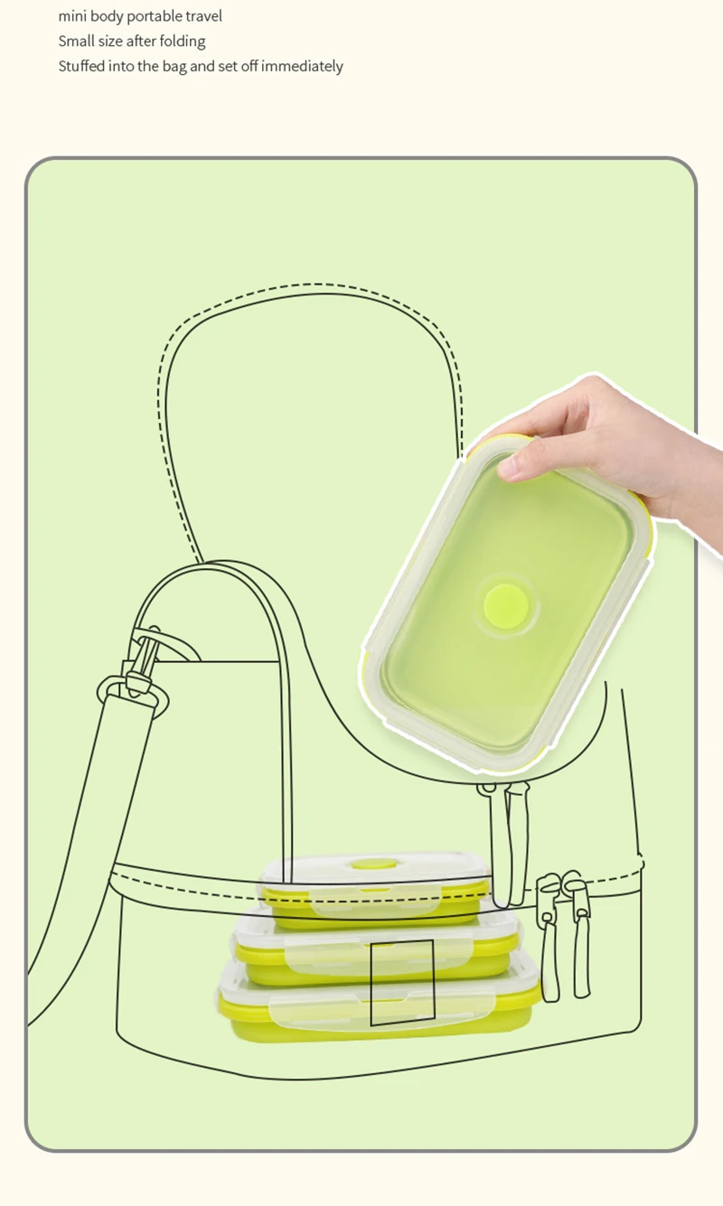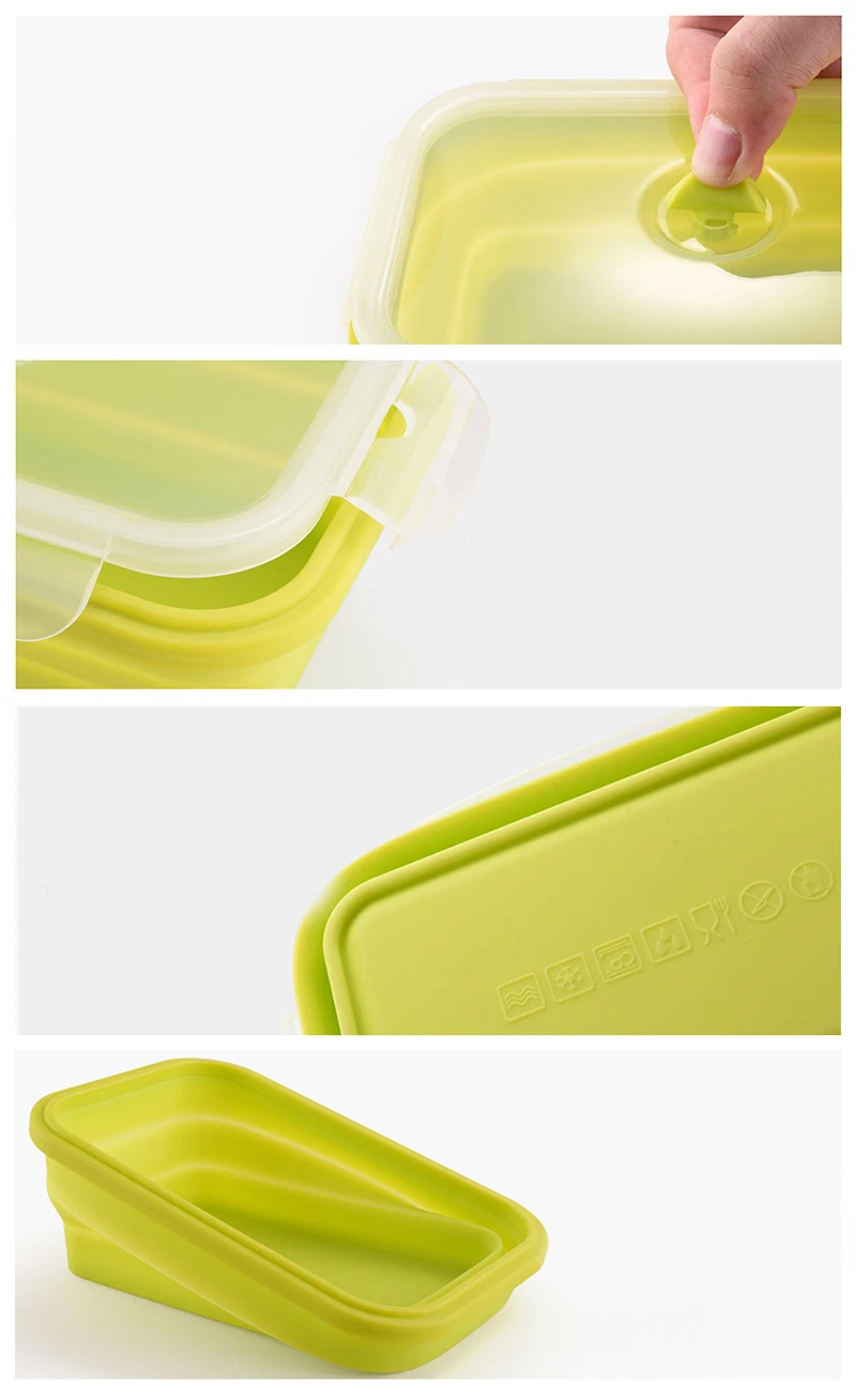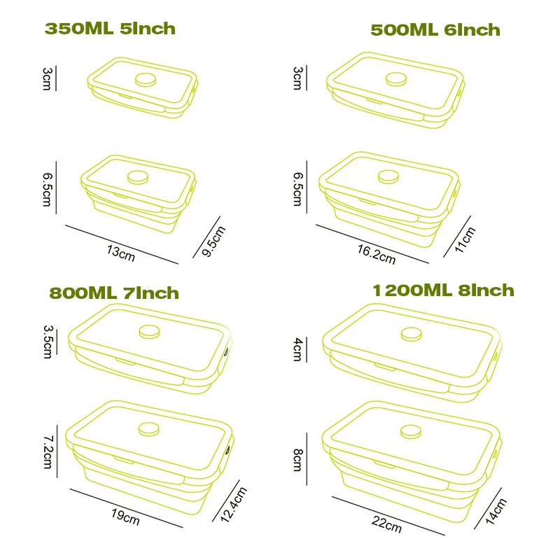 Особенности: Экологически чистый пищевой силиконовый материал, нетоксичный, не вреден для нашего здоровья. Складной дизайн, легко носить с собой и экономить место. Может использоваться в микроволновой печи, холодильнике. Подходит для кухни, улицы, кемпинга, путешествий, пеших прогулок и т. д. Не легко деформируется, разрывается, плавится. Параметры: Материал: пищевой силикон, экологически чистый ПП Термостойкость: -40-120 градусов по Цельсию Размеры: 300ML: 13x9.5x6.5CM 500ML: 16.2x11x6.5CM 800ML: 19.5x12.4x7.2CM 1200ML: 22x14x8CM Толщина складывания (прибл.): 3-4 см 300/500/800/1200 мл Складная Силиконовая Коробки для обедов контейнер Портативный микроволновая печь дома Кухня Еда хранения бенто ланч бокс eco-friendly принимаем дропшиппинг