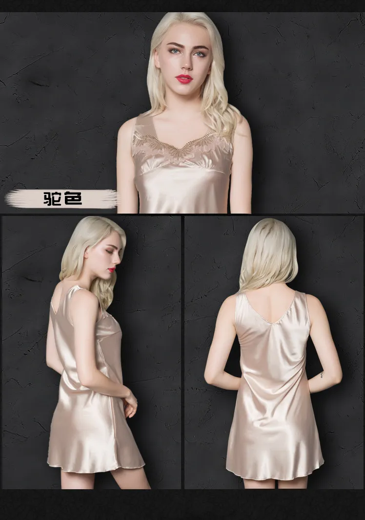 Big Size 4XL Sexy Nightdress Women Nightgowns Sleeping Shirt Sexy Lace Spaghetti Strap Silk Sleepwear Women Plus Size Nightwear